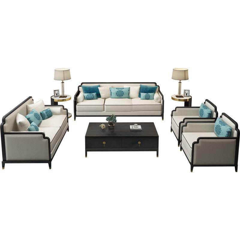 中式实木沙发轻组合客厅展样板新间奢FNF布艺沙发成套整装家具厅