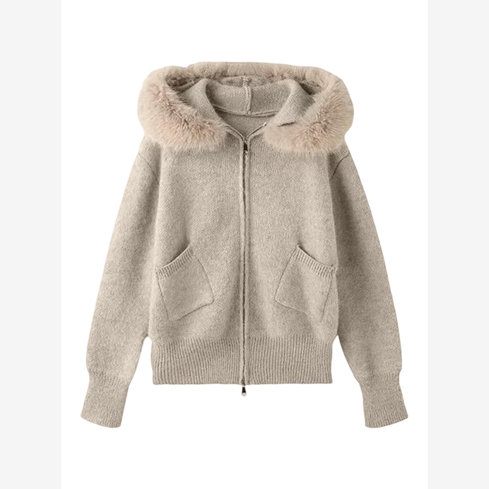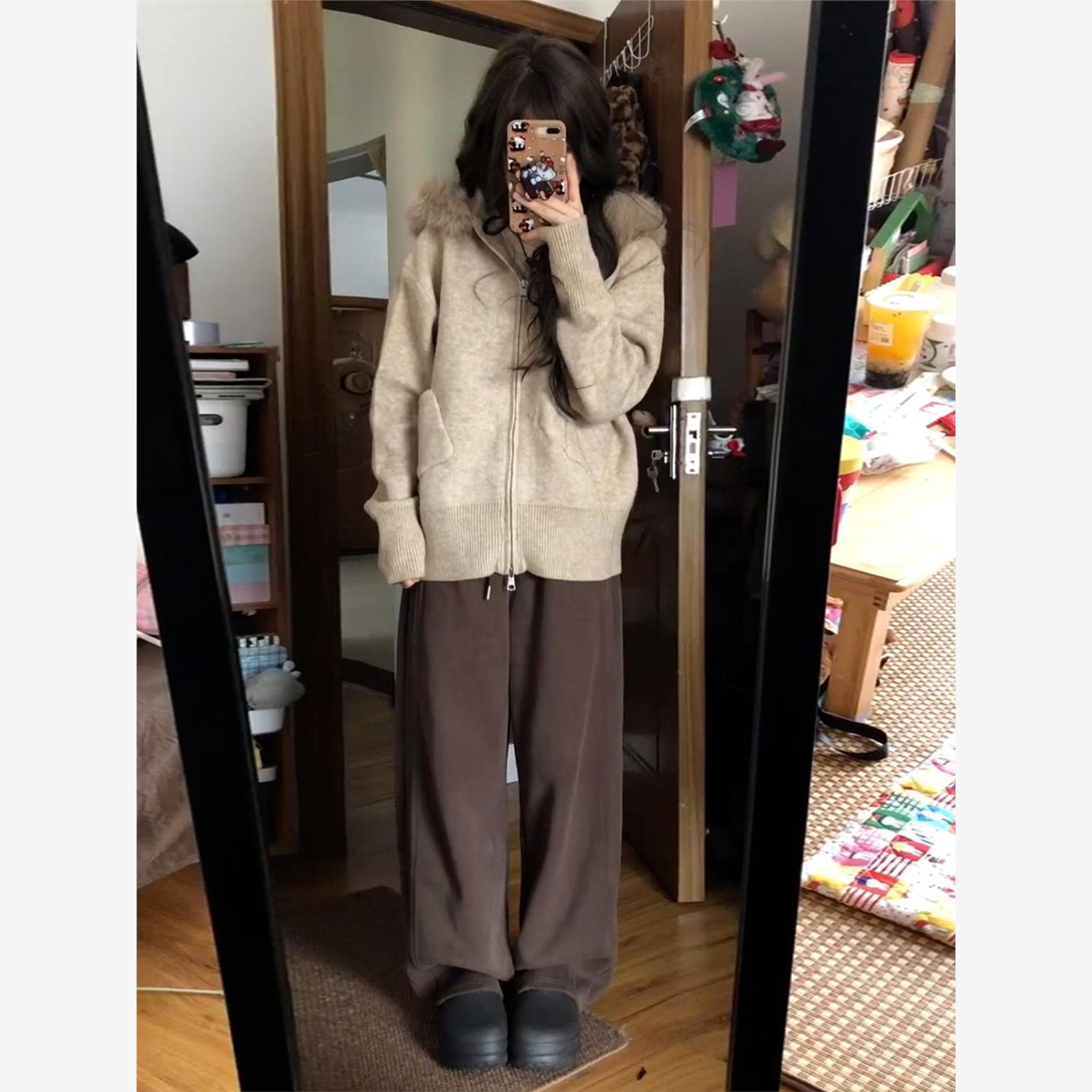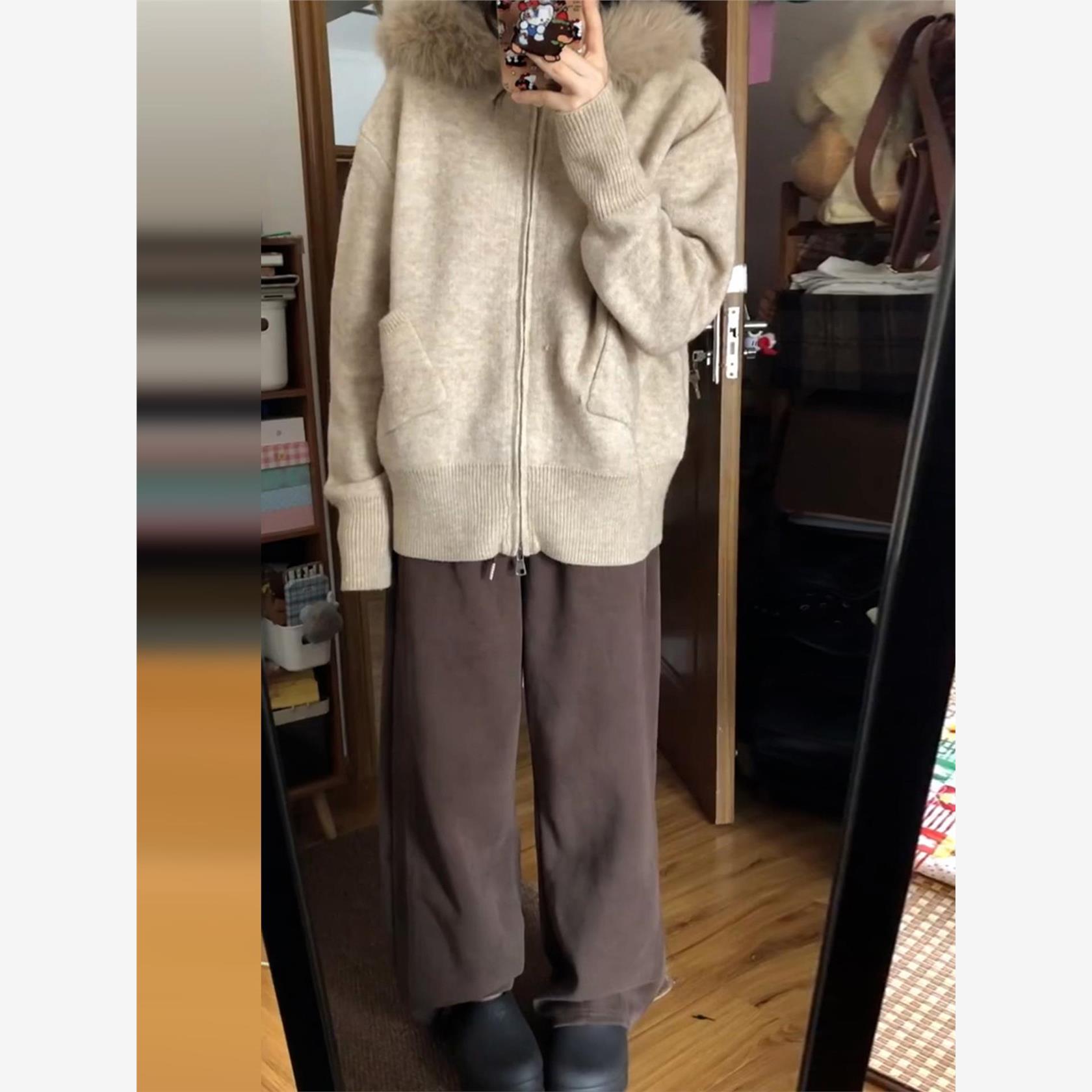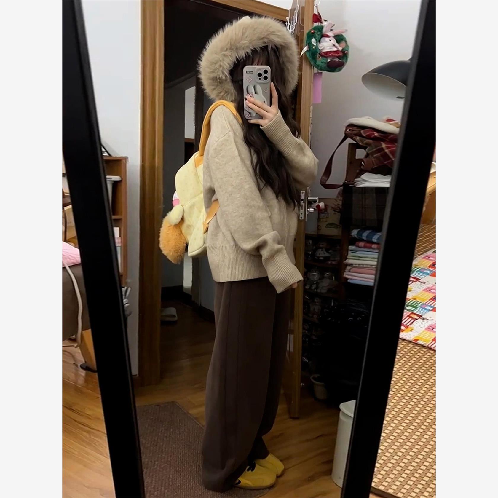 韩系慵懒风长袖连帽毛衣女秋冬季2025新款超好看针织开衫外套上衣
