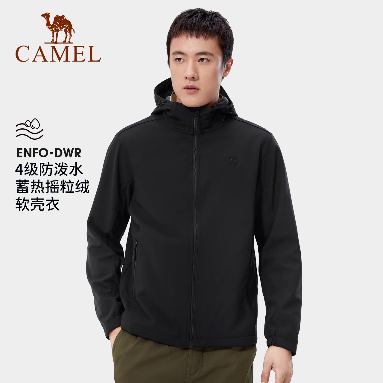 骆驼户外软壳衣男装单层冲锋衣时尚保暖防风防泼水夹克风衣女外套