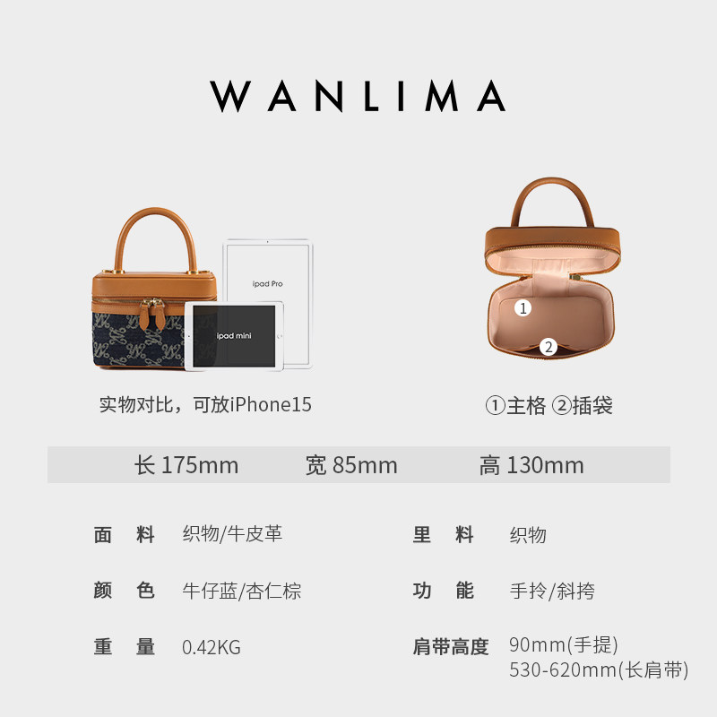 万里马盒子小方包女斜挎2025新款超火手提复古牛仔高级感单肩女包