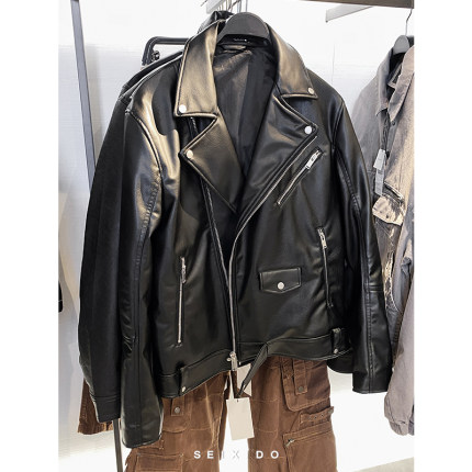 柜599!秋冬男装仿皮斜拉链机车夹克4391400 800皮衣外套8491/400