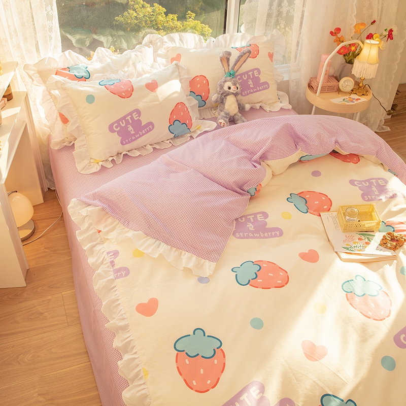 小清新公主风纯棉床裙四件套可爱少女心韩式花边被套1.8m床单被罩