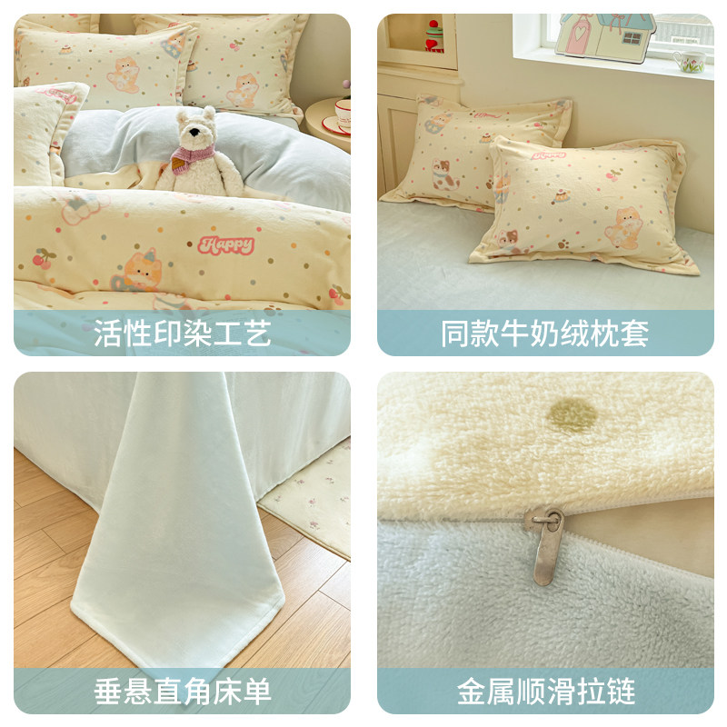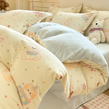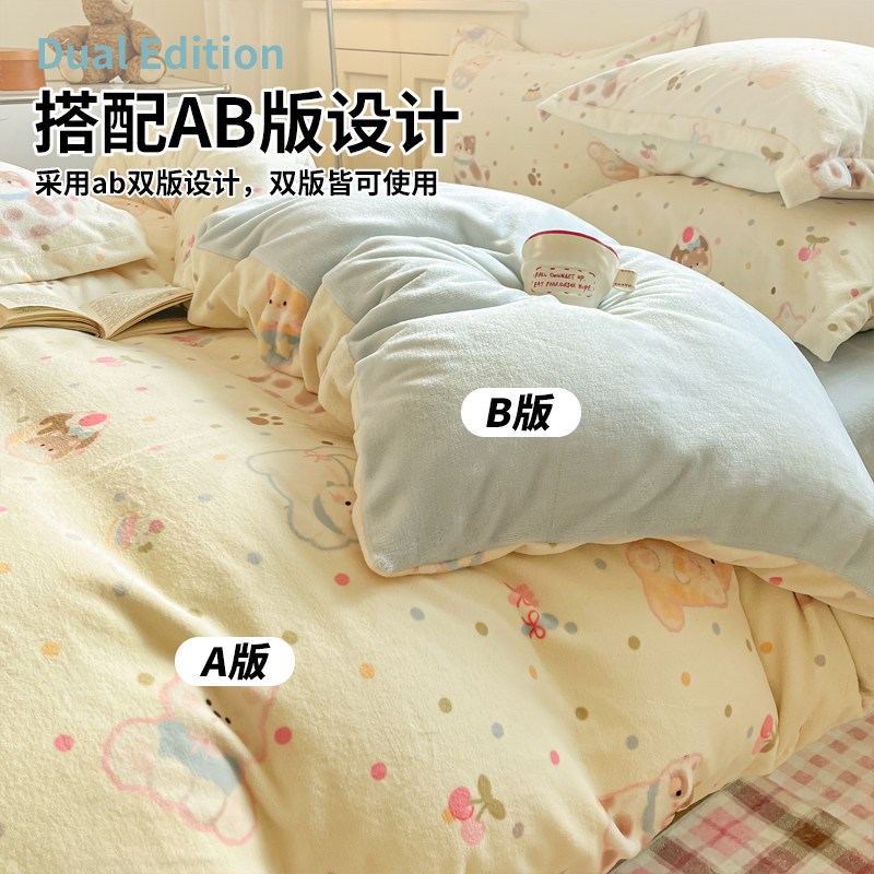 冬季加厚牛奶绒床上四件套双面绒法兰绒珊瑚绒被套床单三件套