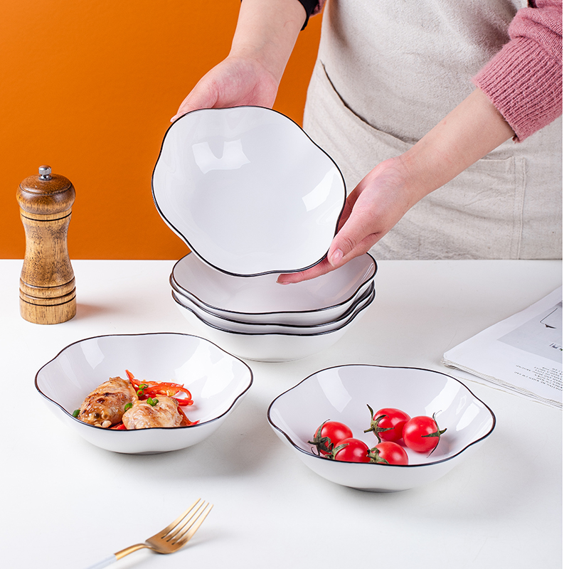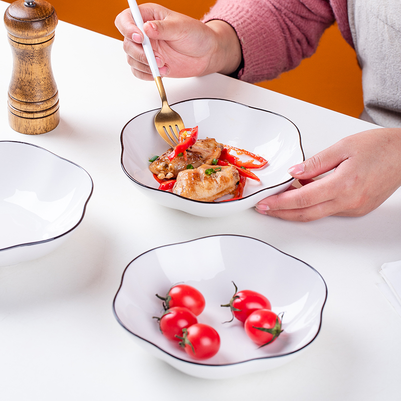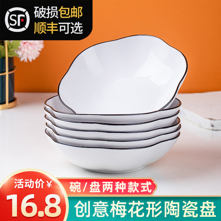日式梅花碗家用可爱陶瓷创意碗碟套装沙拉碗水果碗简约釉下彩餐具