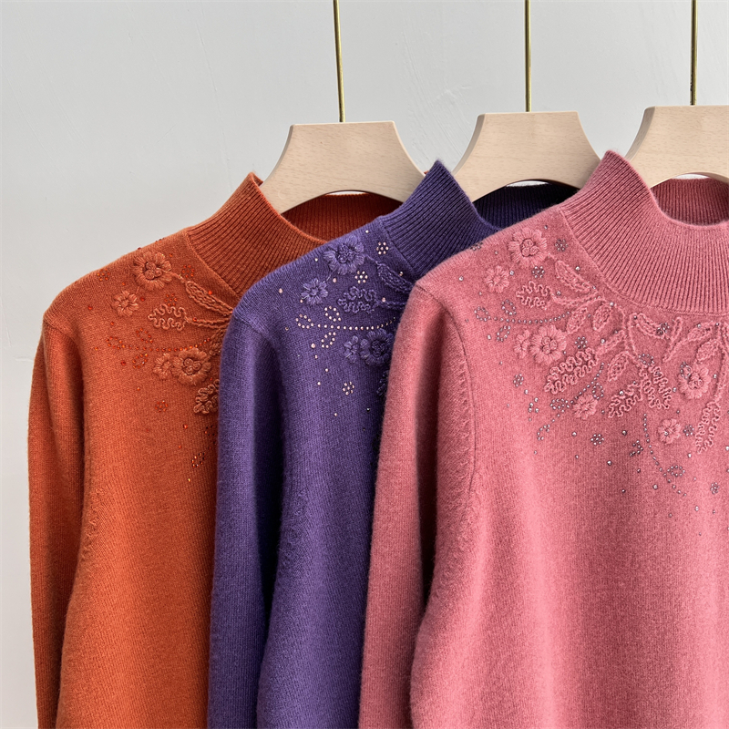 100%纯羊毛衫妈妈装冬季半高领毛衣女秋冬洋气中老年人保暖打底衫