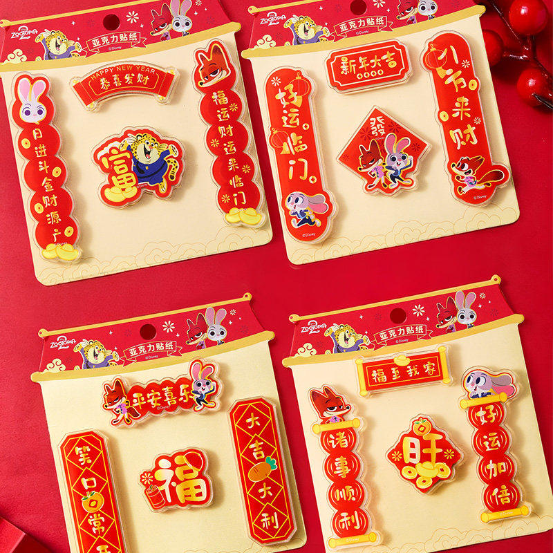 迪士尼冰箱贴疯狂动物城亚克力春节磁性贴新年礼物圣诞生日装饰贴