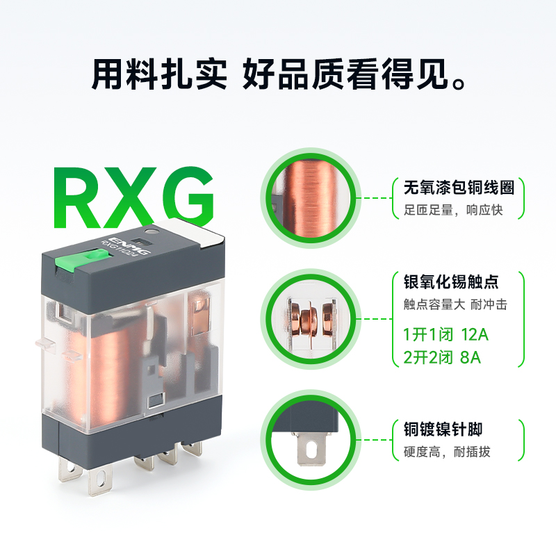 恩爵小型薄款RXG中间继电器电磁220v交流两开两闭5/8脚直流dc24v