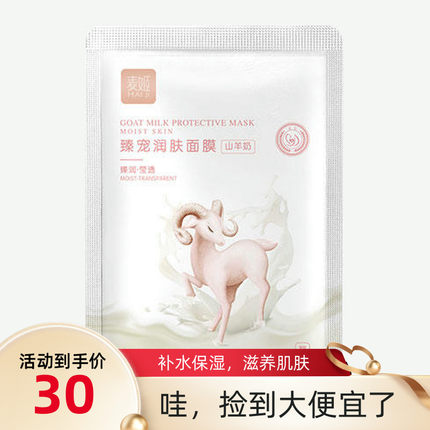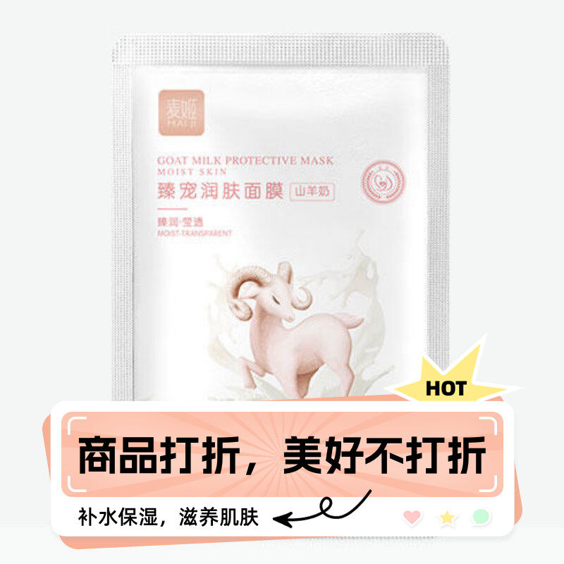 麦姬润肤山羊奶面膜提亮肤色暗黄补水保湿嫩白6片贝泉质臣