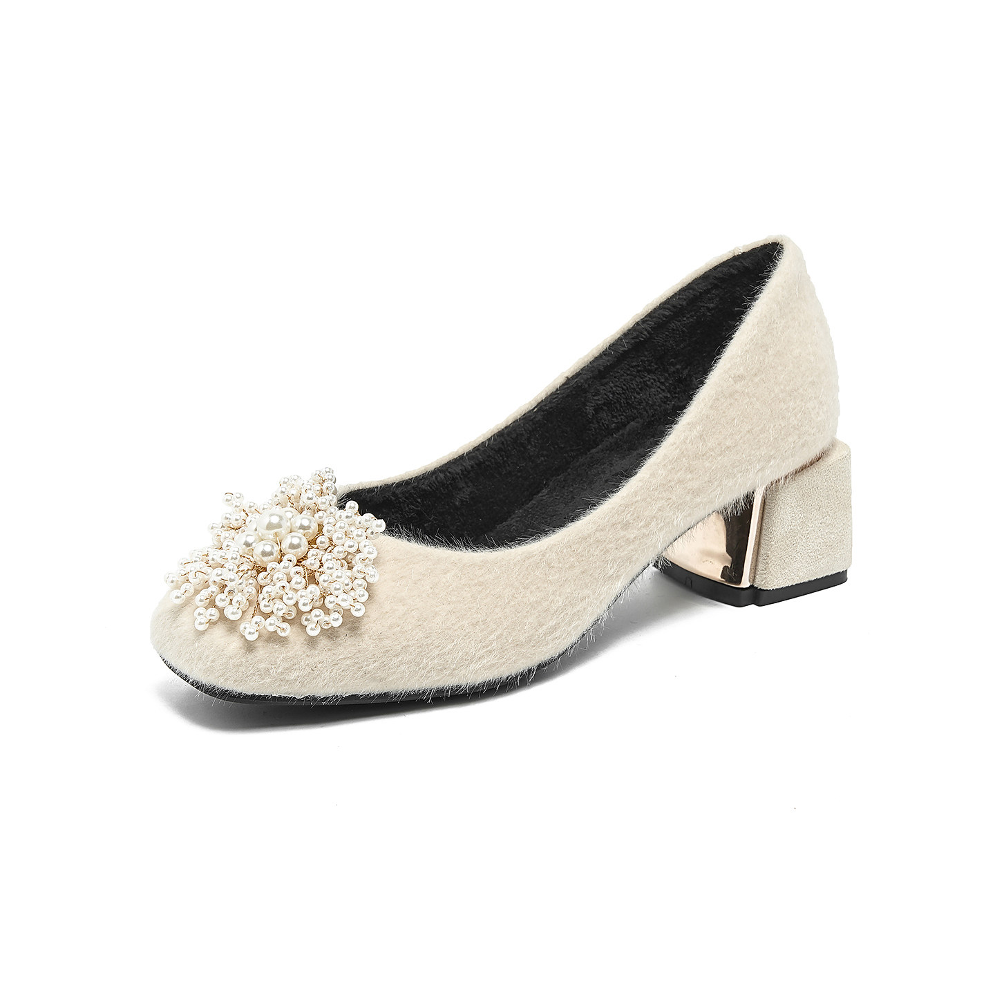 高级气质加绒高跟鞋女2025新款秋冬毛毛鞋不累脚粗跟单鞋中跟婚鞋