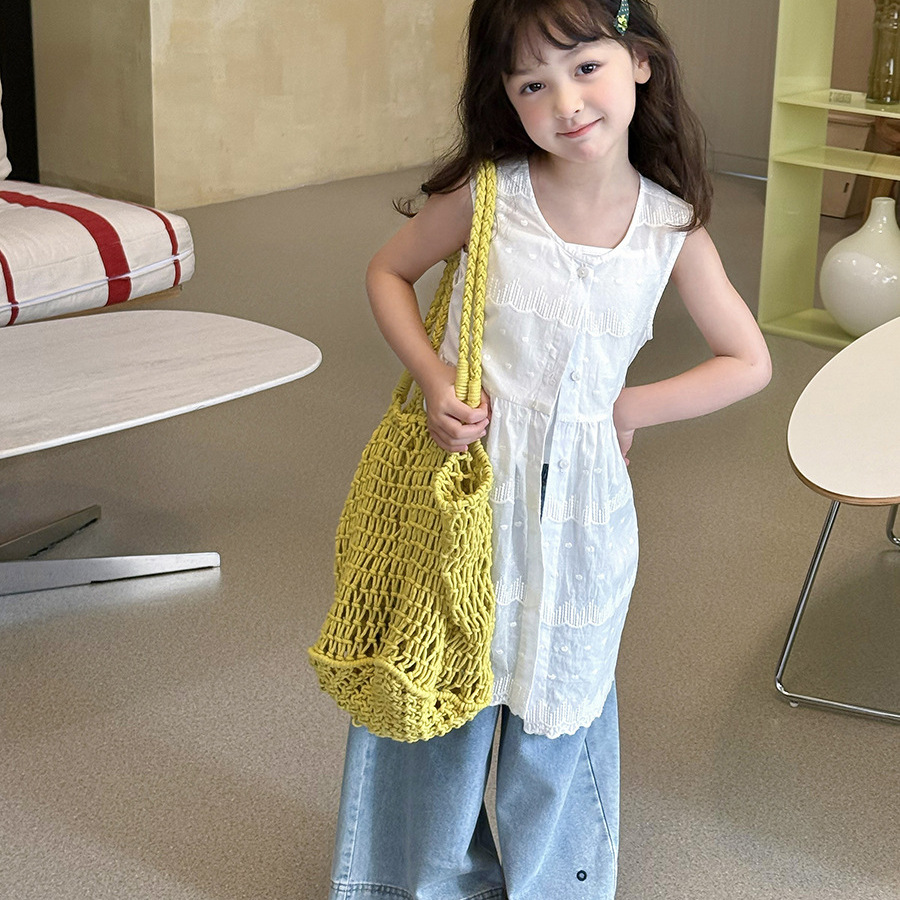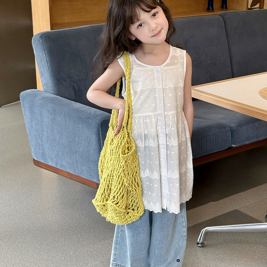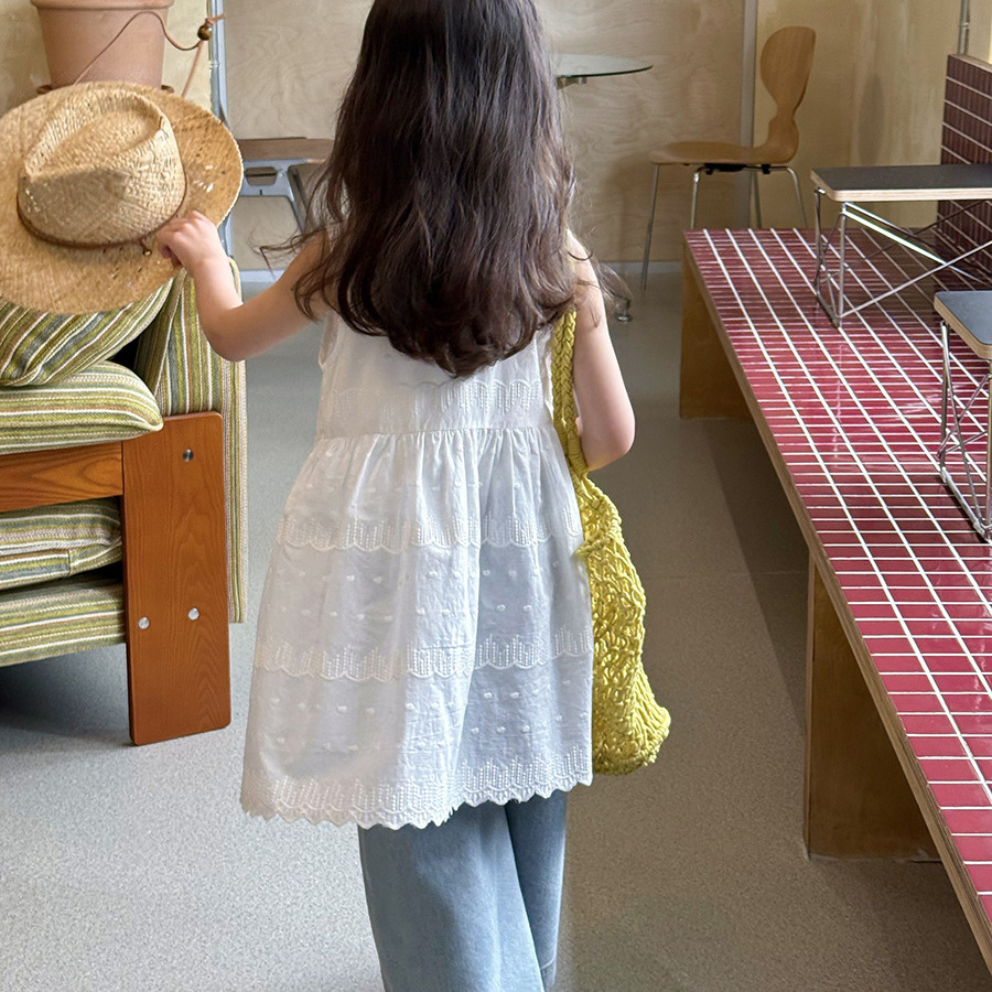 Yumi妈 女童气质甜美蕾丝提花叠穿背心裙轻薄无袖罩衫裙25D052