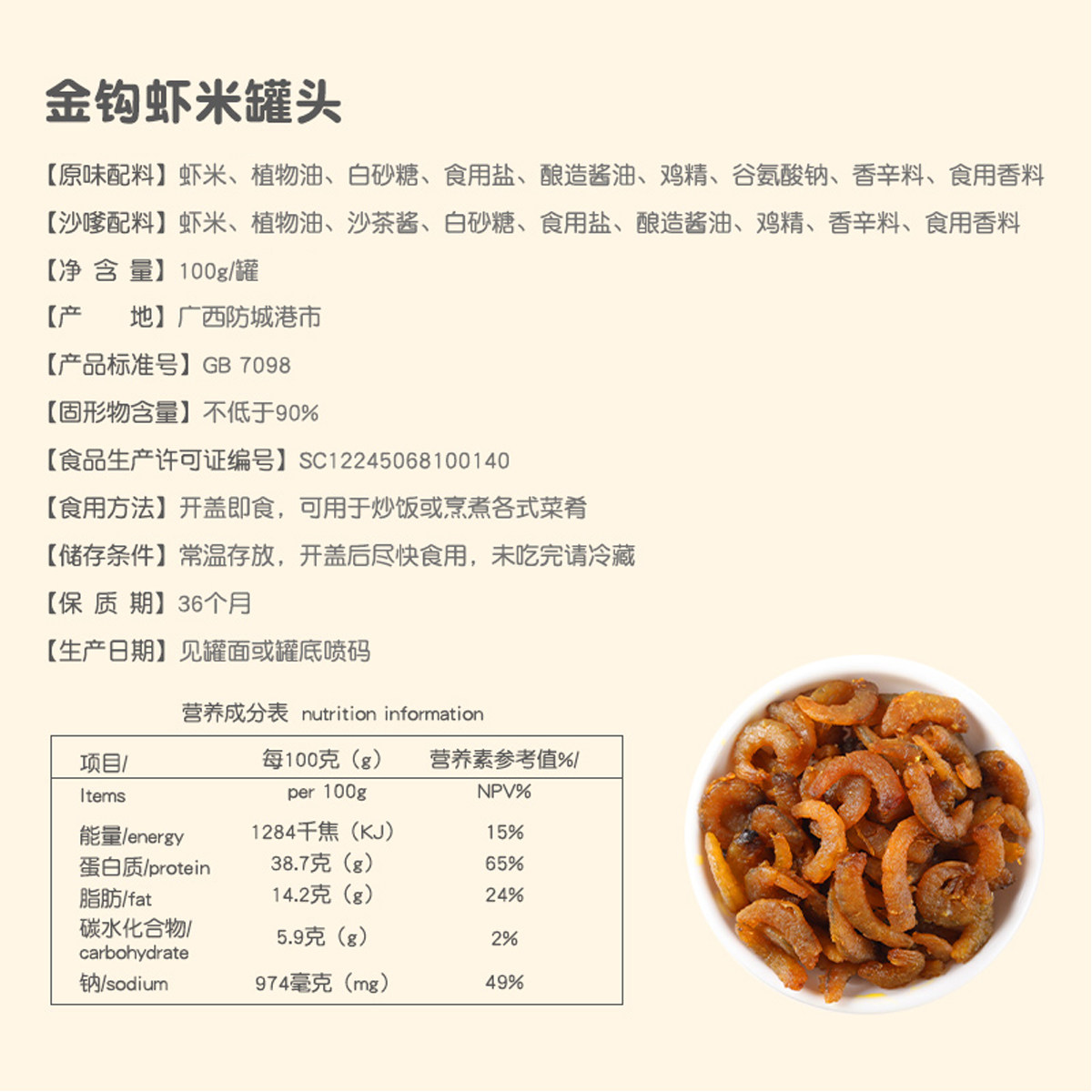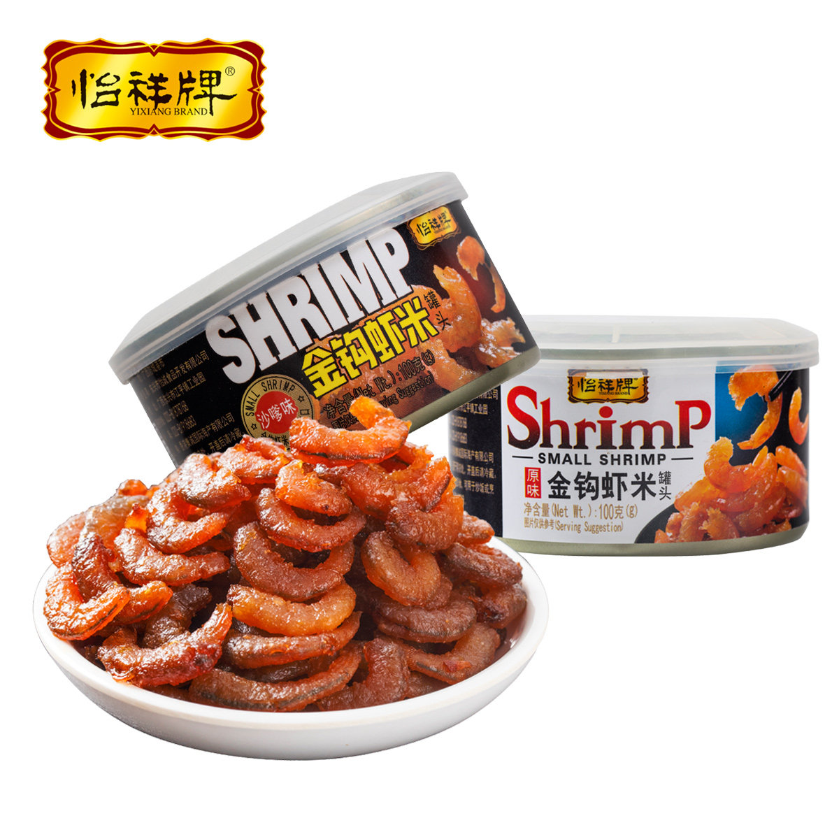 怡祥牌金钩虾米罐头即食去皮虾仁海米海鲜对虾零食罐装原味100g