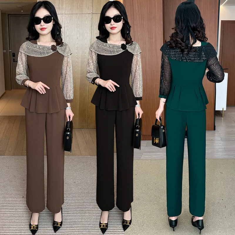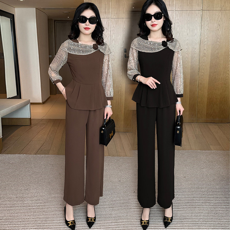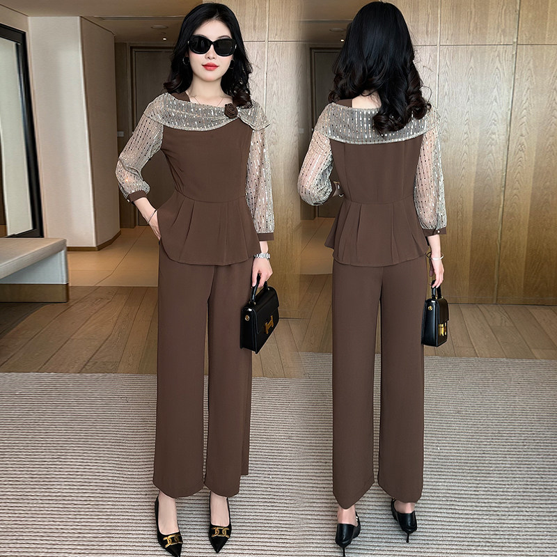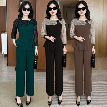 2026年早春新款时尚套装女士穿搭一整套蕾丝拼接洋气质减龄两件套