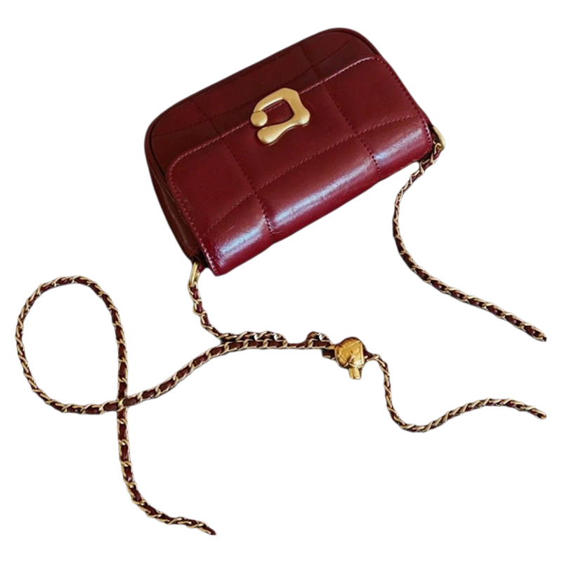 2025新款超火爆款高质感精致斜挎小包包酒红色流行百搭链条小方包