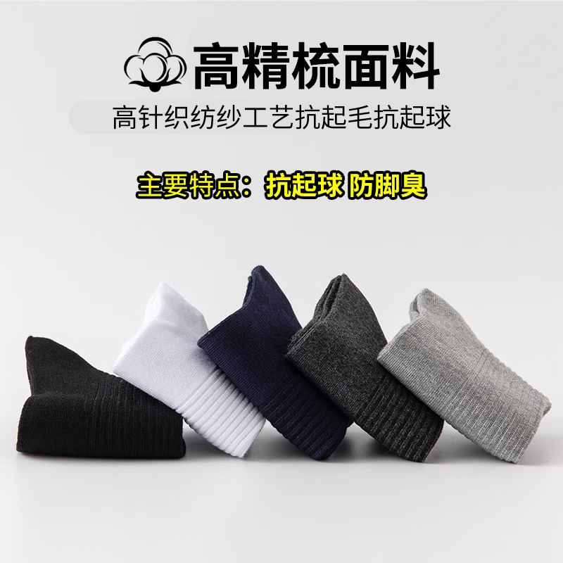 袜子男款秋冬季中筒袜透气长筒袜防臭运动袜男士纯色棉袜黑色白色