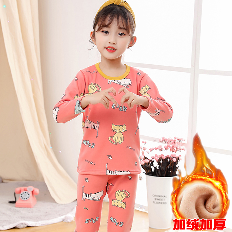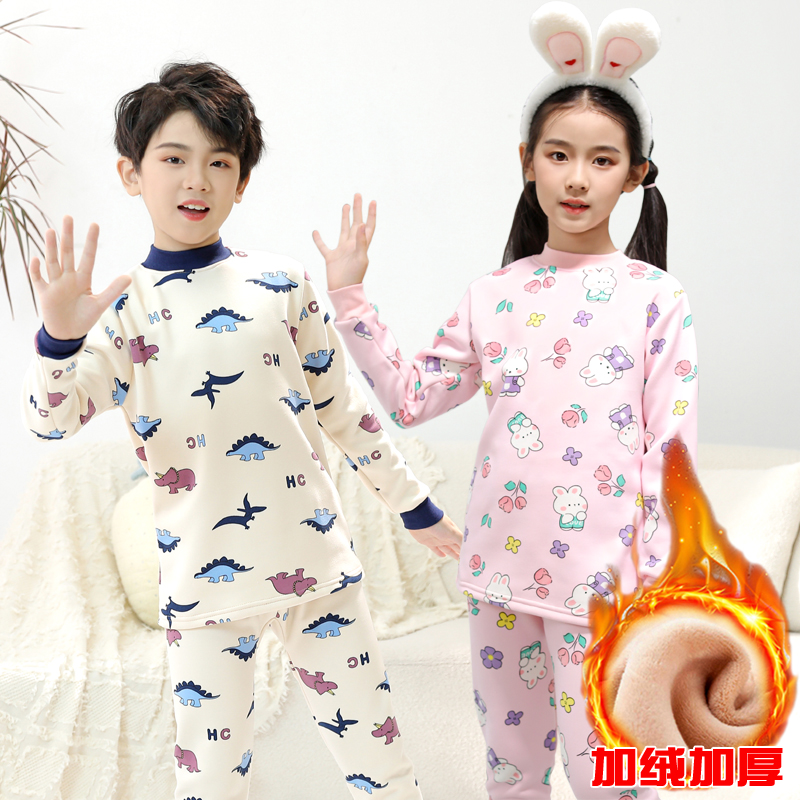 女童加绒保暖内衣套装加厚儿童秋衣秋裤秋冬中大童小女孩子青少年