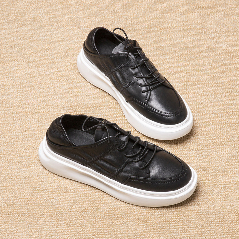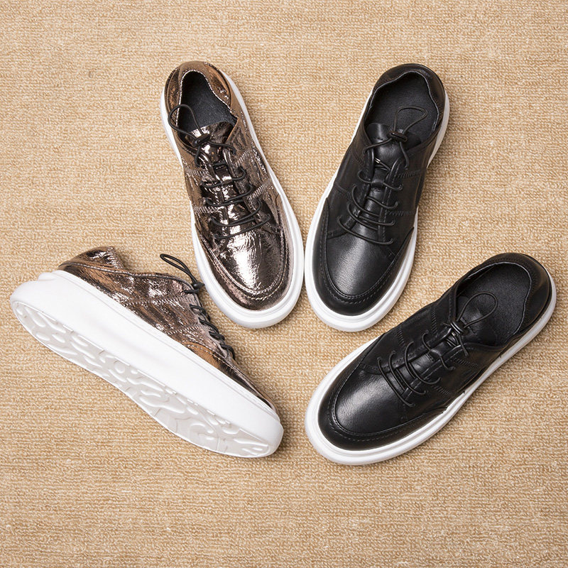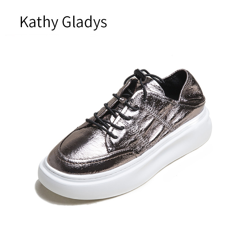 原创个性软皱漆皮松糕鞋女厚底防滑系带运动ins休闲轻便软底单鞋