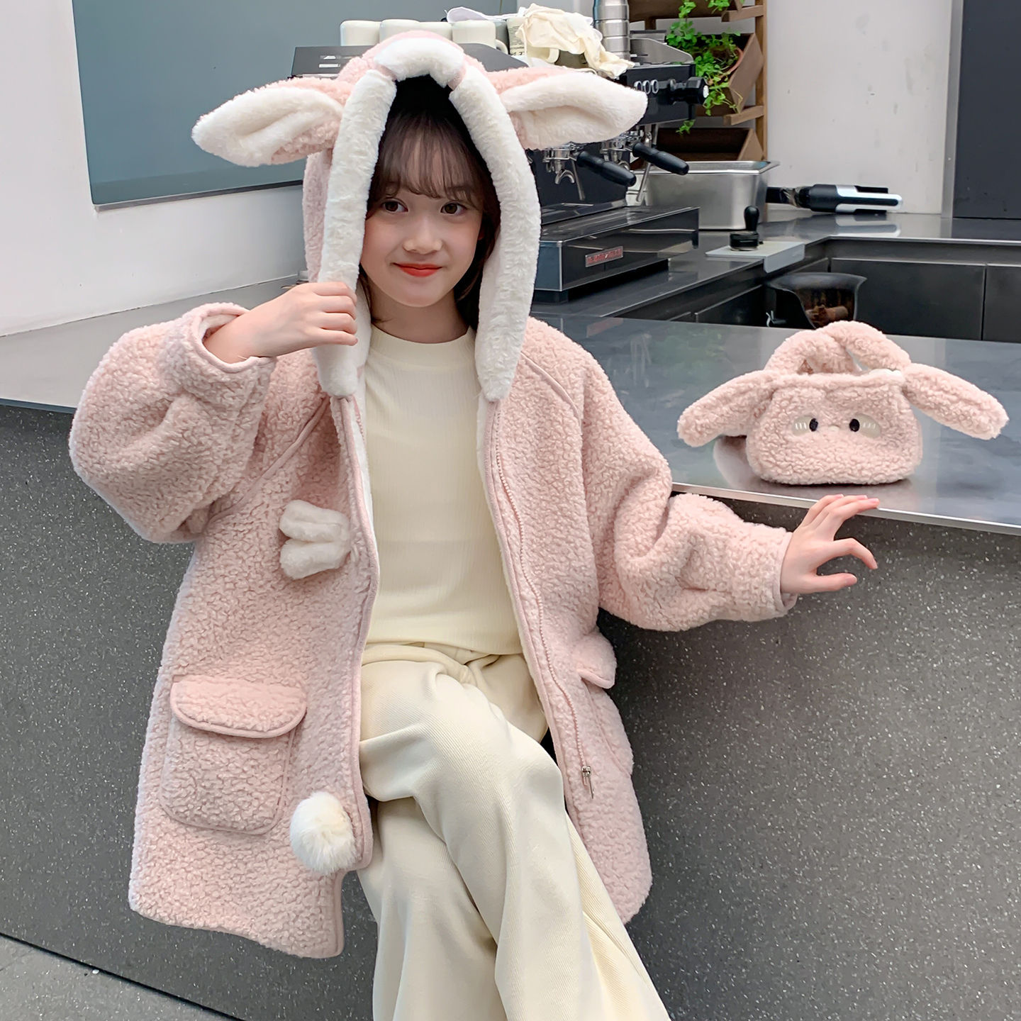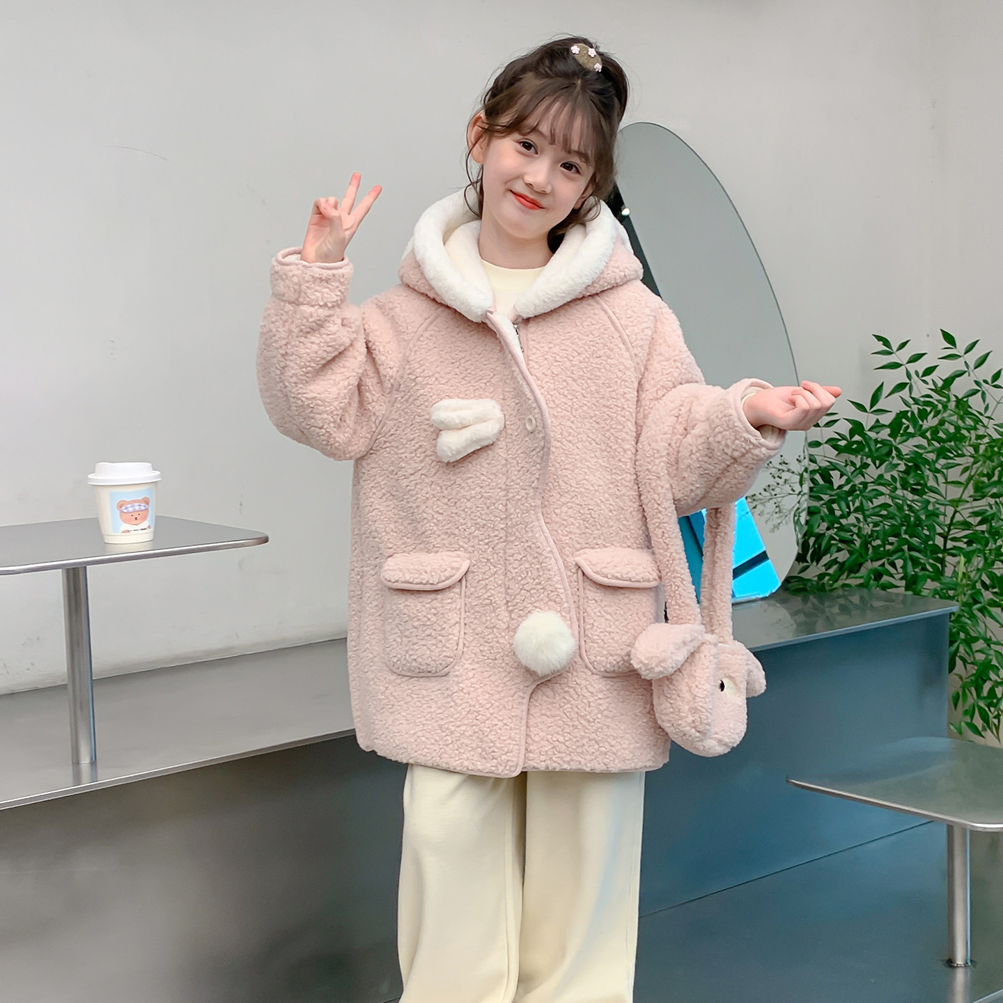 女童羊羔绒外套秋冬款2025新款小女孩加厚毛毛衣儿童衣服冬季