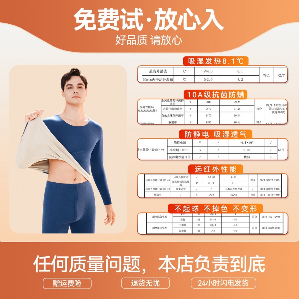 猫人无痕保暖内衣男士加绒加厚发热羽绒羊绒蚕丝秋衣秋裤套装冬季