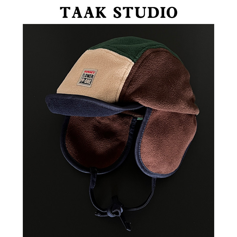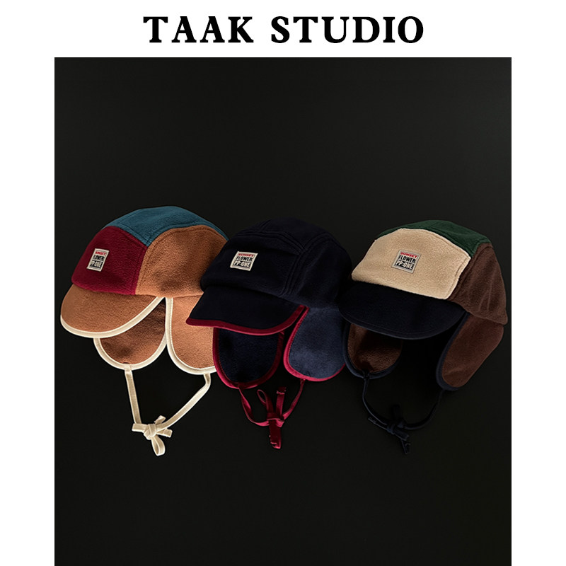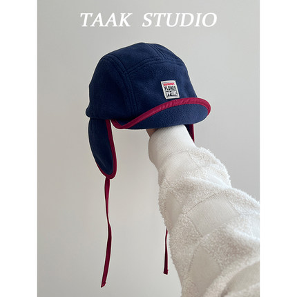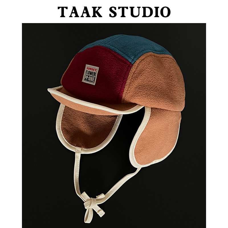 韩国摇粒绒拼色雷锋帽女冬天护耳鸭舌帽子韩版户外亲子保暖滑雪帽