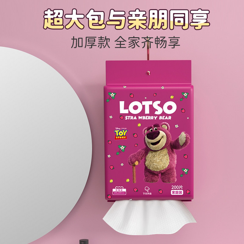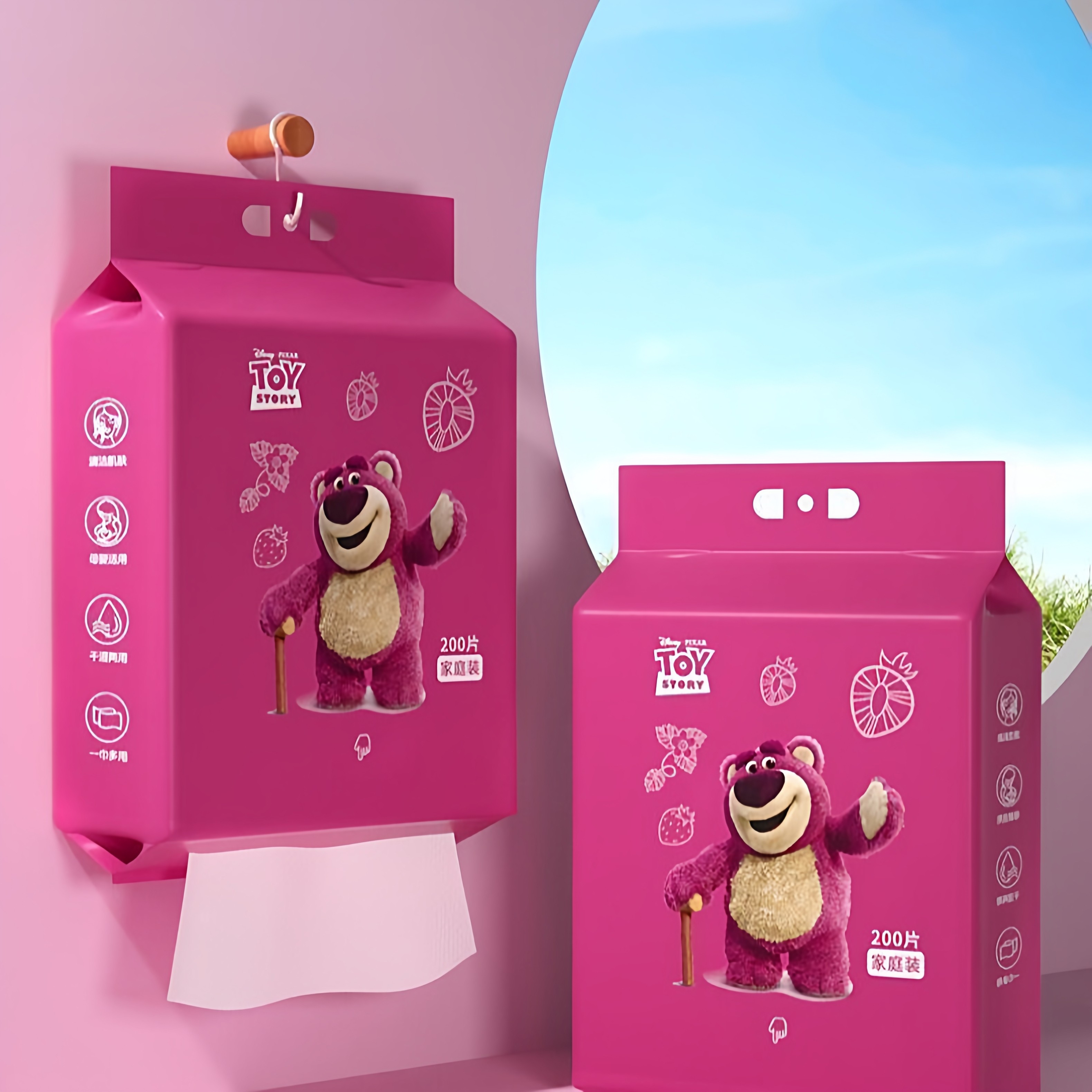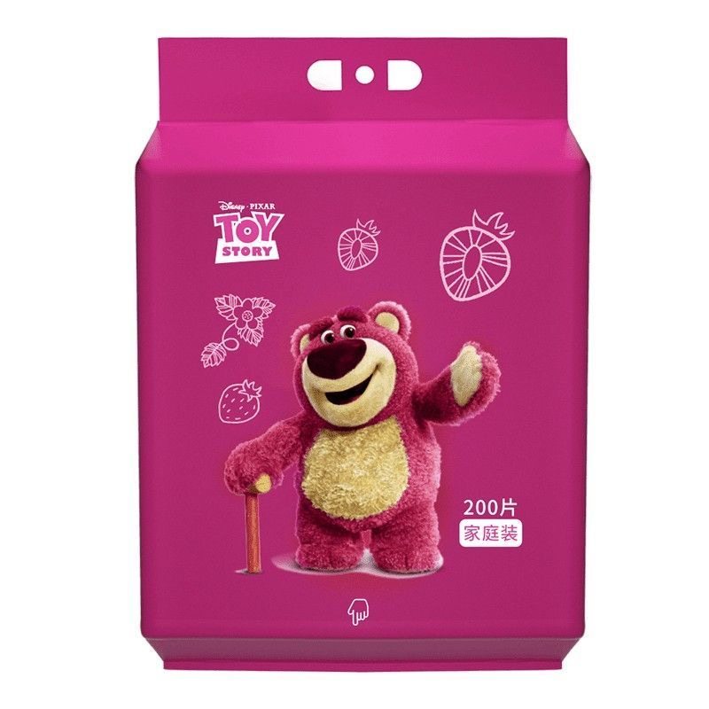 正版迪士尼草莓熊一次性洗脸巾加厚洁面巾悬挂抽取式 600克家庭装