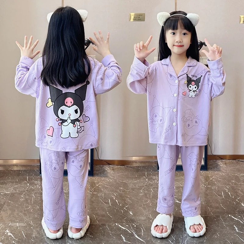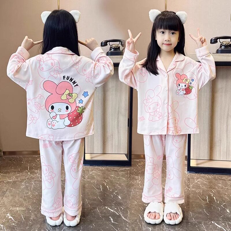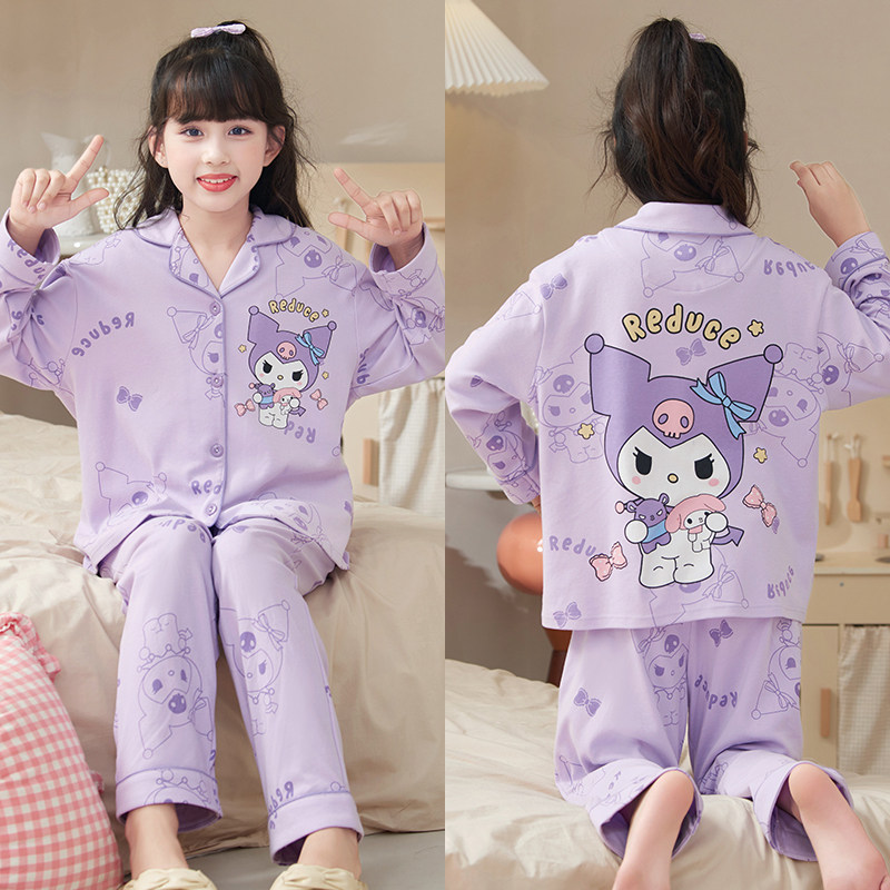 儿童睡衣春秋翻领长袖小女孩公主风卡通可爱家居服薄款中大童套装