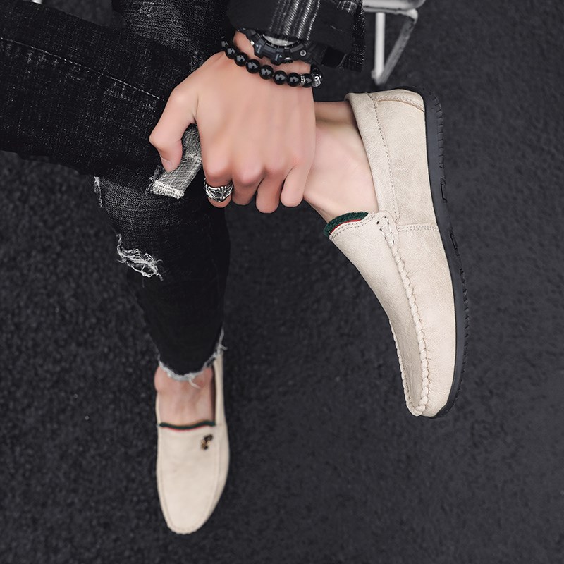 男鞋豆豆鞋男2025新款夏季潮流一脚蹬懒人开车英伦百搭休闲黑皮鞋
