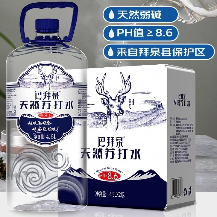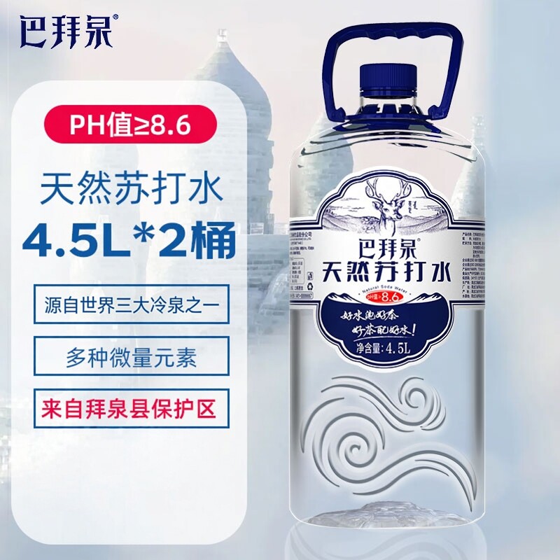 巴拜泉饮用天然苏打水4.5L*2桶整箱碱性苏打水大桶
