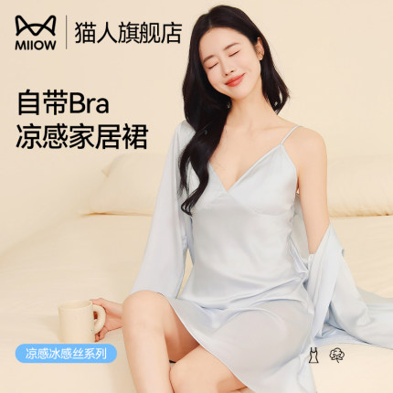 猫人纯欲风高级感冰丝吊带睡裙女款夏季性感缎面2025新款薄款睡衣
