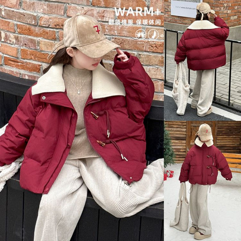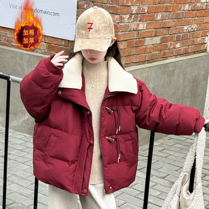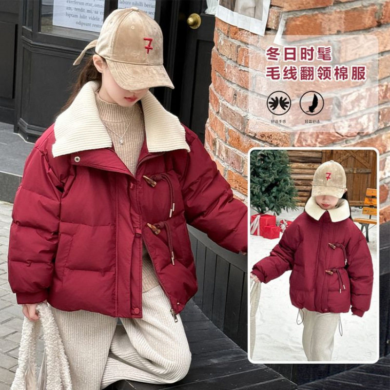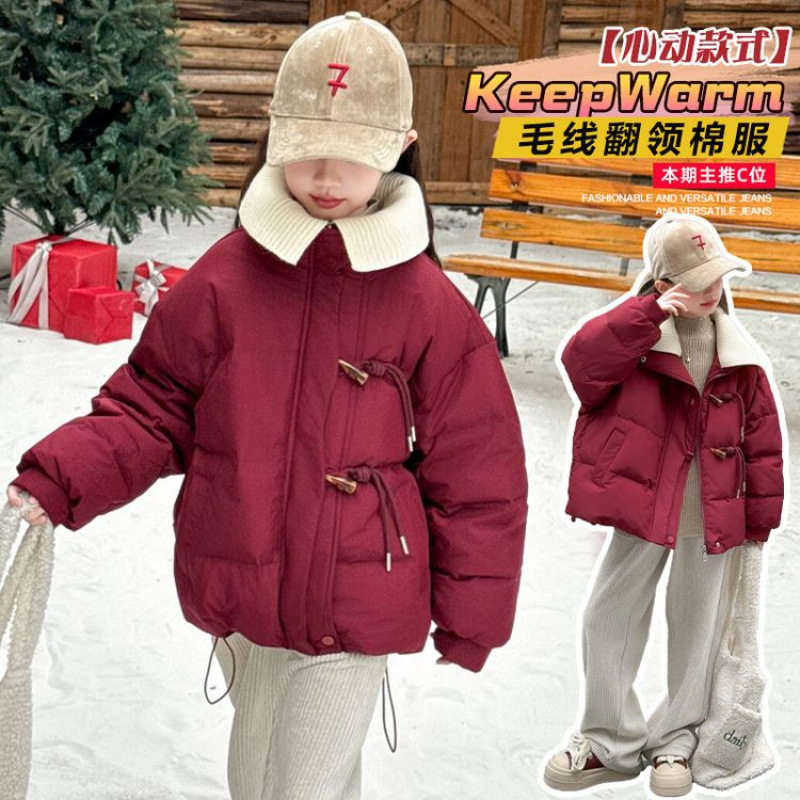 女大童冬装年服外套2024新款女孩时髦翻领棉衣女生新年拜年服棉袄