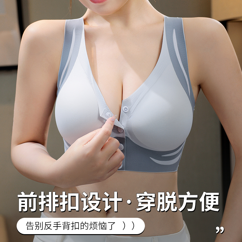 大码前扣内衣女胖mm大胸显小聚拢收副乳防下垂大码背心式文胸罩夏