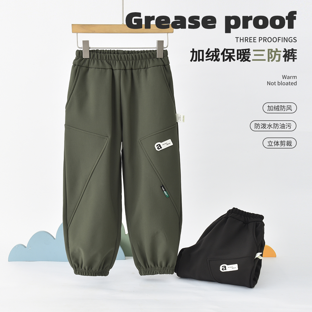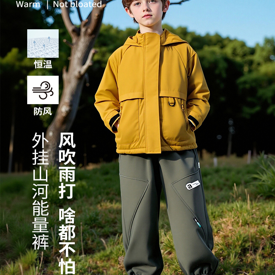 男童裤子儿童户外三防秋冬防水拒油污加绒加厚保暖运动裤2025新款