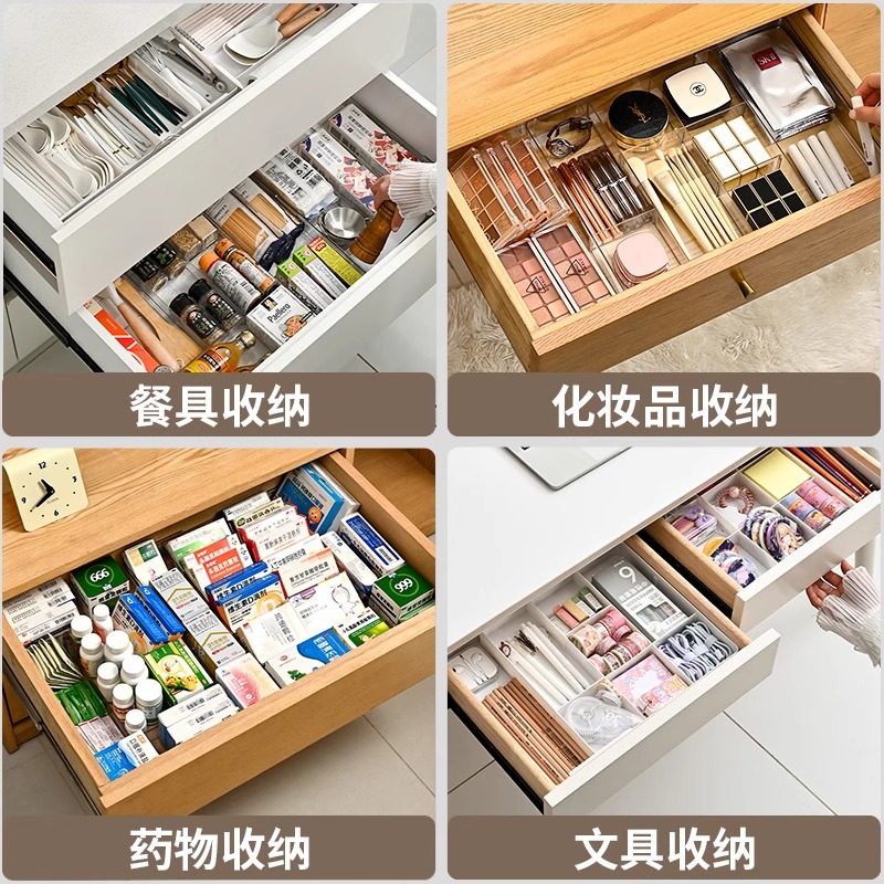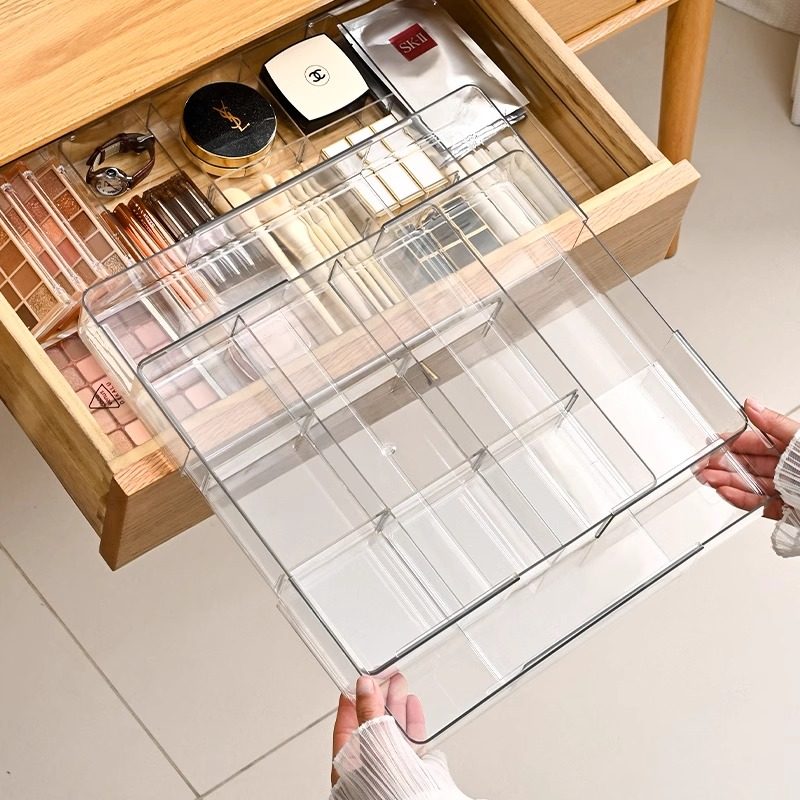 日本进口抽屉内分隔收纳盒可伸缩可折叠化妆品厨房桌面分格整理盒