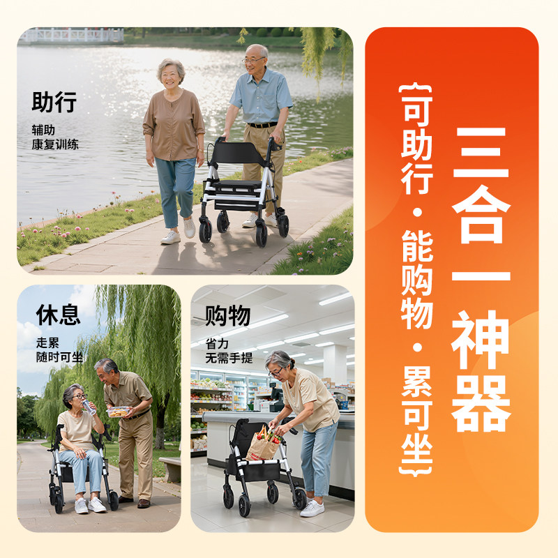 老人手推车折叠便携式出行辅助走路老年防摔倒助步代步车可推可坐