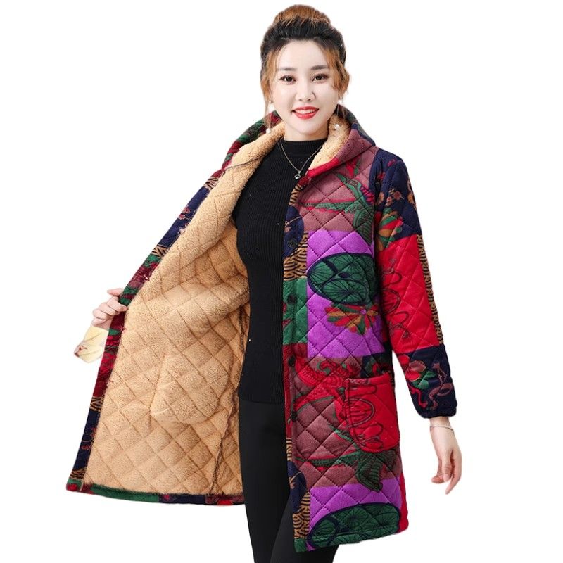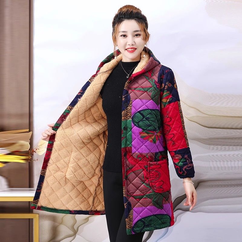 四川省服加绒加厚冬季女装保暖防寒工作服罩衣棉衣外套中长款宽松