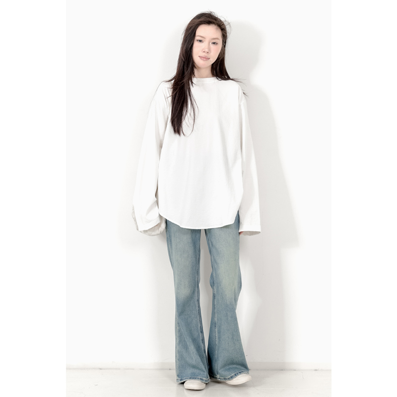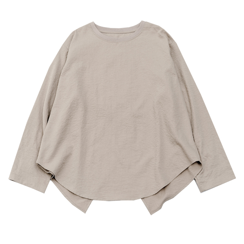 KNgs 春季复古风设计感宽松小众圆领长袖中长款开叉套头衬衫女
