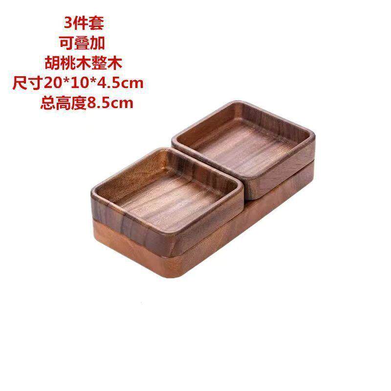 胡桃木盘子方形托盘日式餐具家用点心盘儿童零食水果盘可堆叠