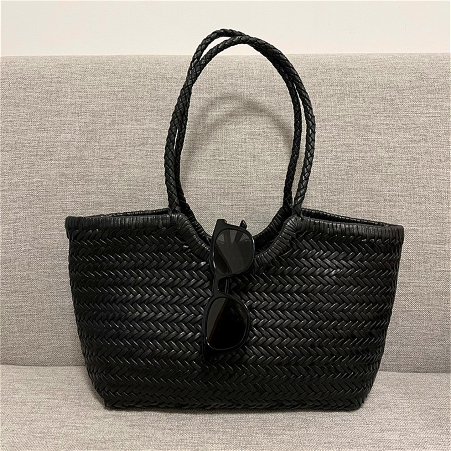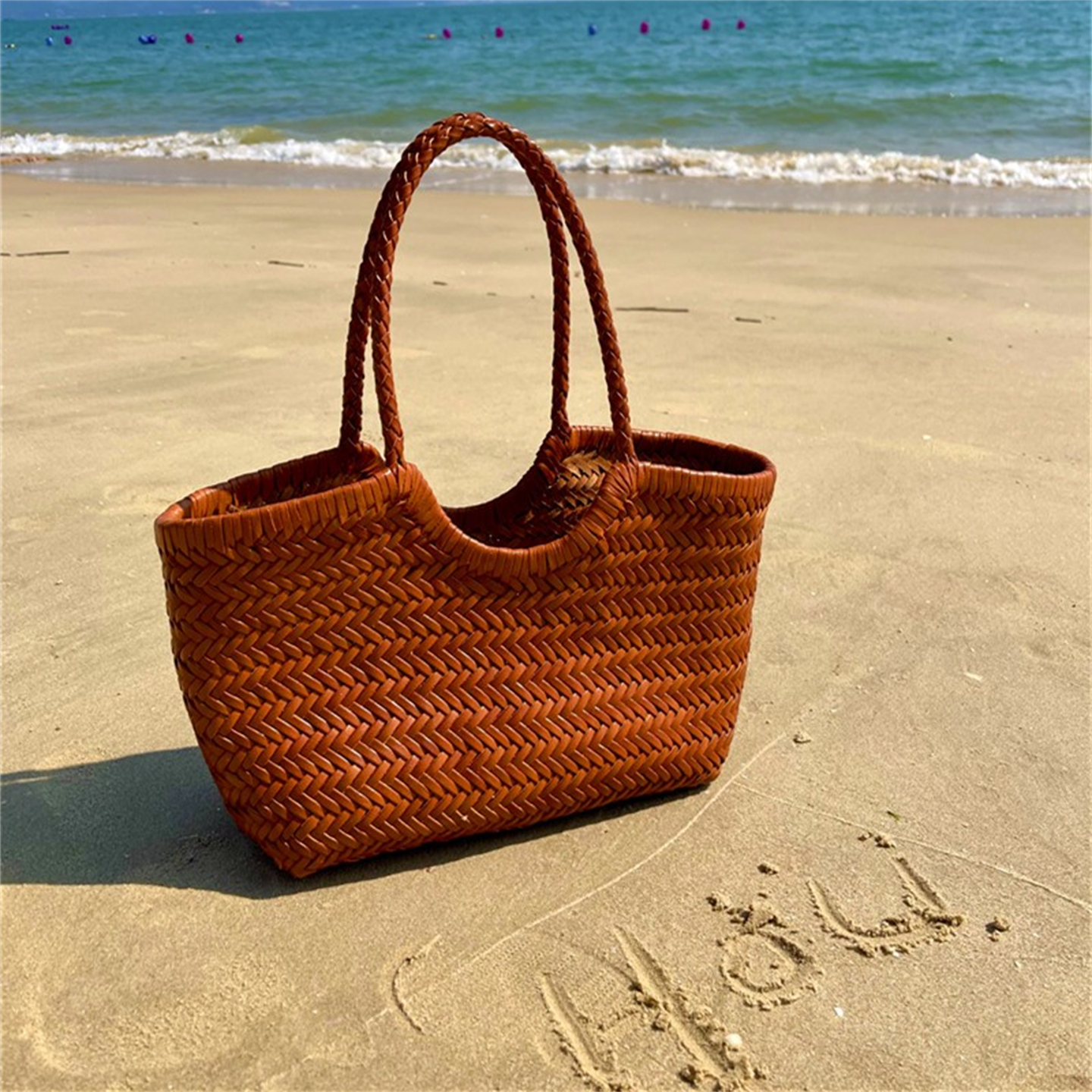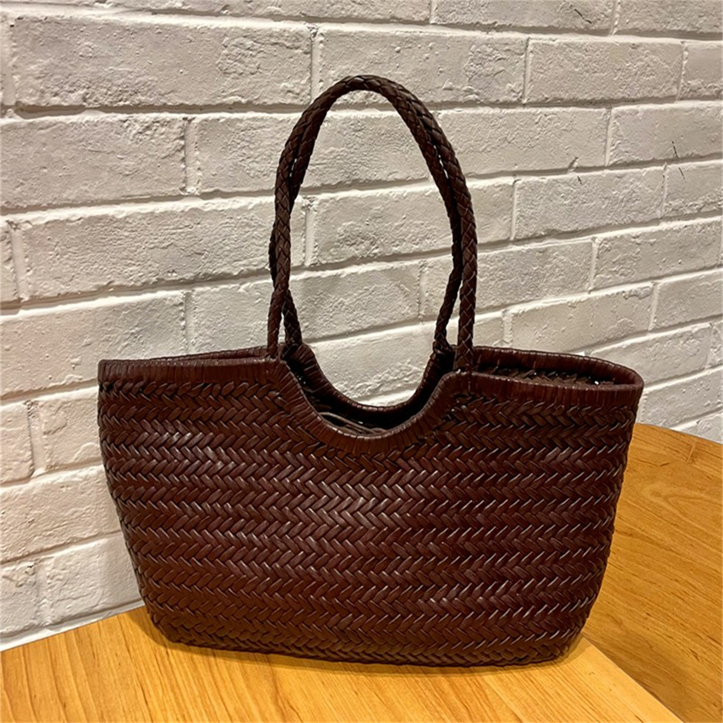 手工牛皮编织包手提单肩菜篮子包腋下托特包真皮女袋度假旅行秋冬