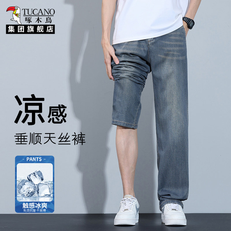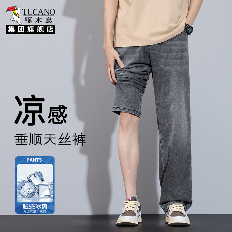 啄木鸟集团官方牛仔裤男款夏季透气薄款直筒新款宽松垂感阔腿裤XT