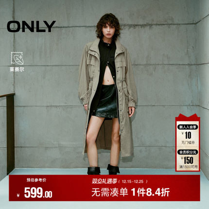 ONLY2025冬季新款都市休闲风防风立领设计开衫中长款风衣外套女