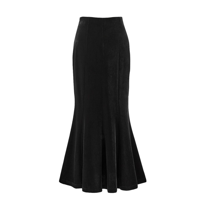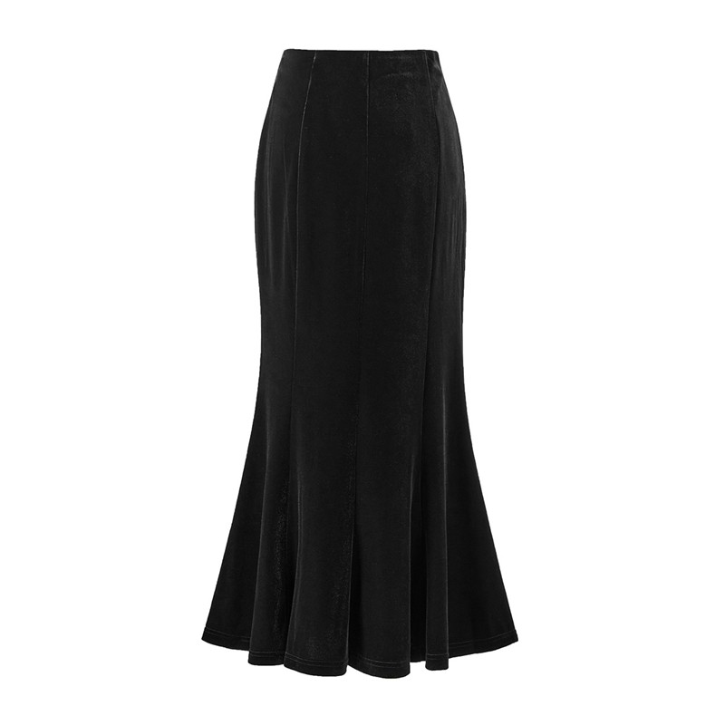 她池丝绒鱼尾裙2025秋装新款女装复古优雅修身包臀高腰中长半身裙