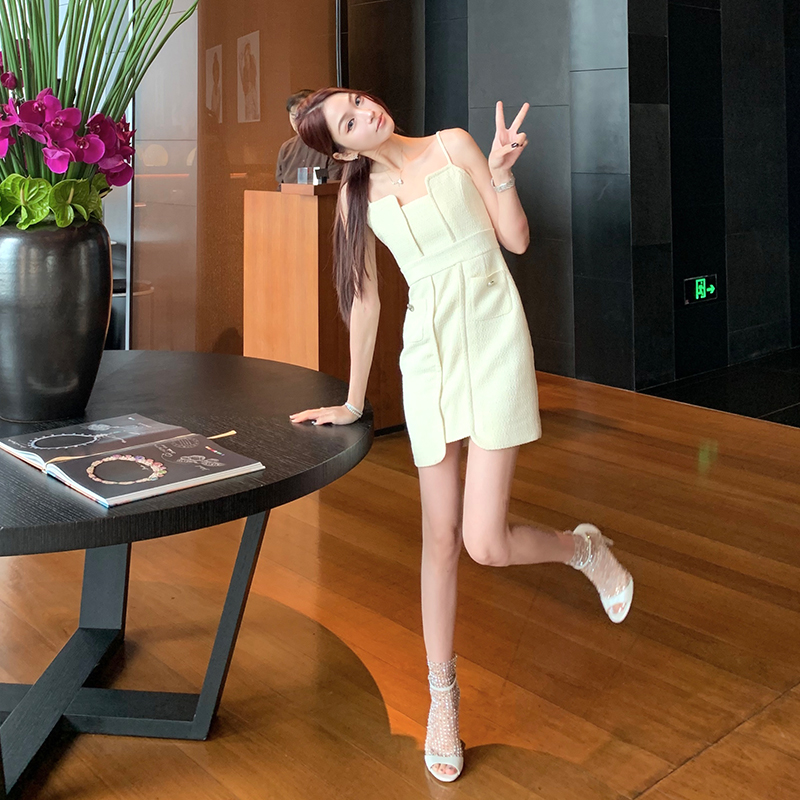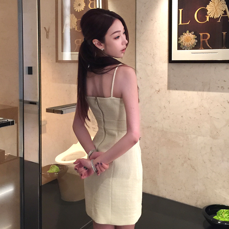 Boamarket 小香吊带连衣裙女2024夏季收腰气质显瘦高级感拉链裙子
