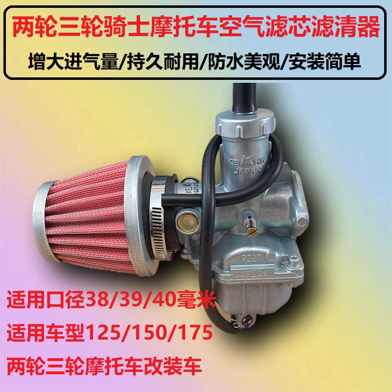 两轮三轮摩托车踏板车125/110/150/200改装空气滤芯滤清器蘑菇头
