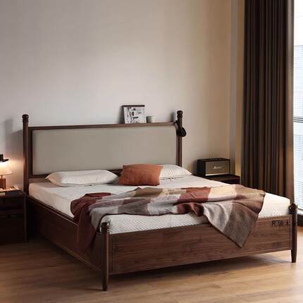 北欧复古黑胡桃木箱体床现代简约日式小户型全实木高箱储物双人床