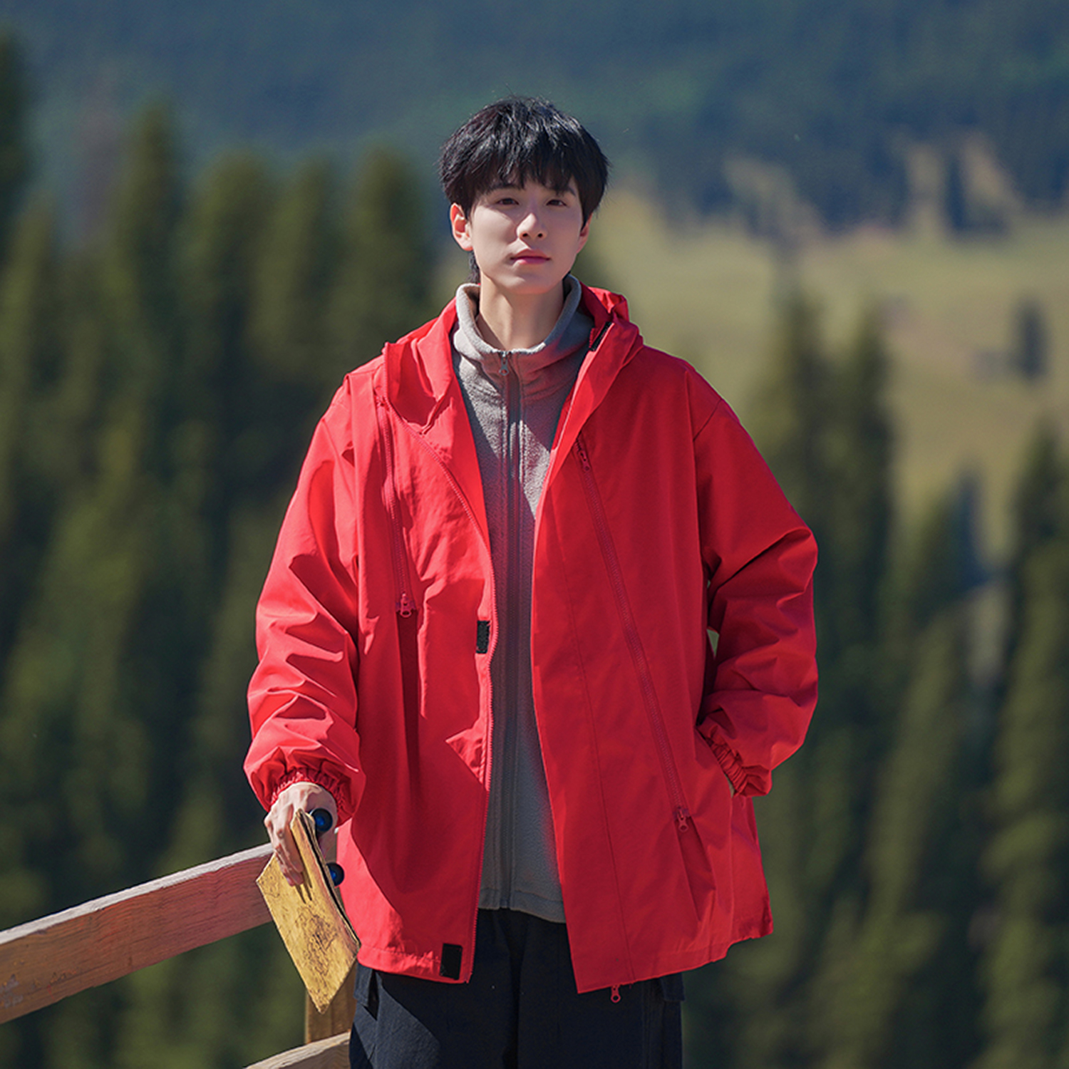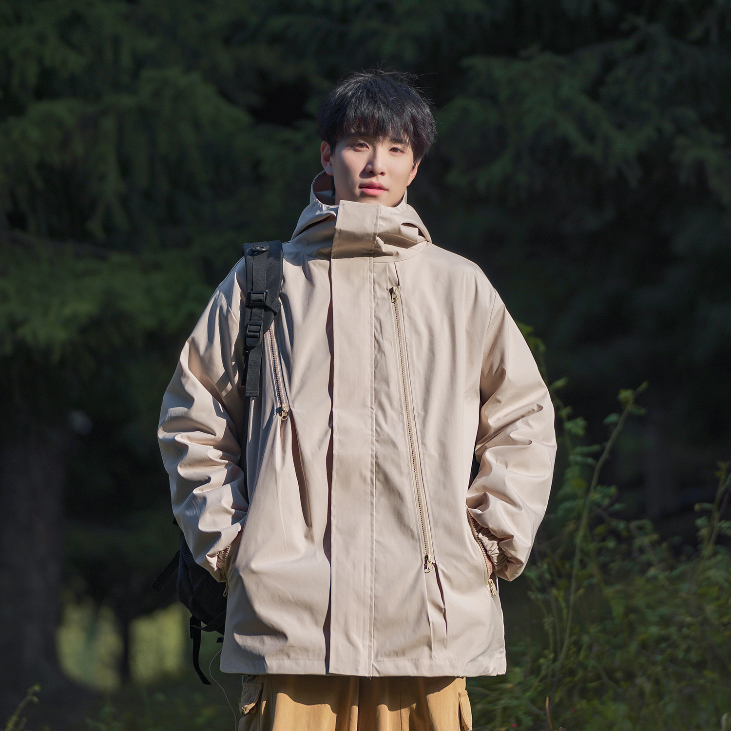 黑色三合一冲锋衣外套男秋户外机能风防水夹克高街百搭连帽登山服
