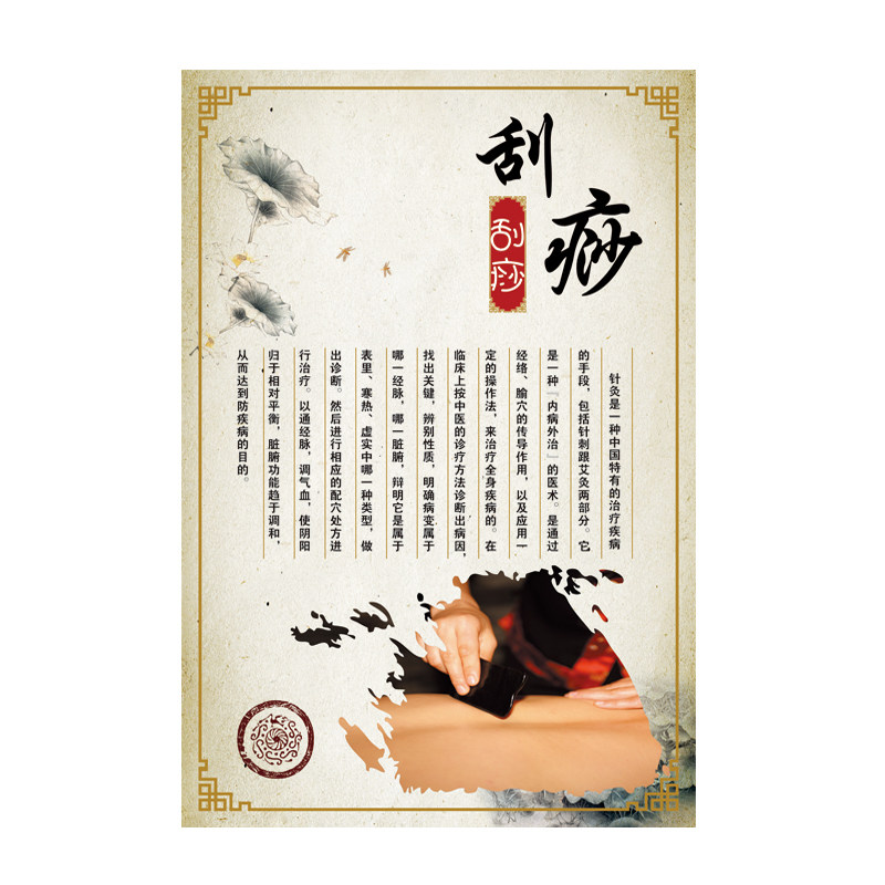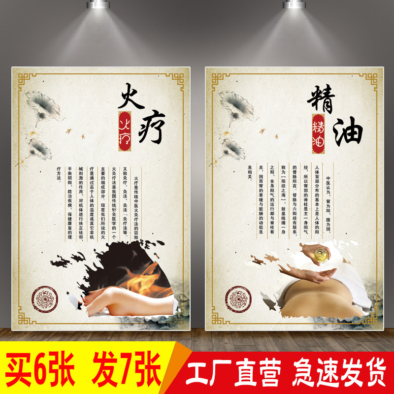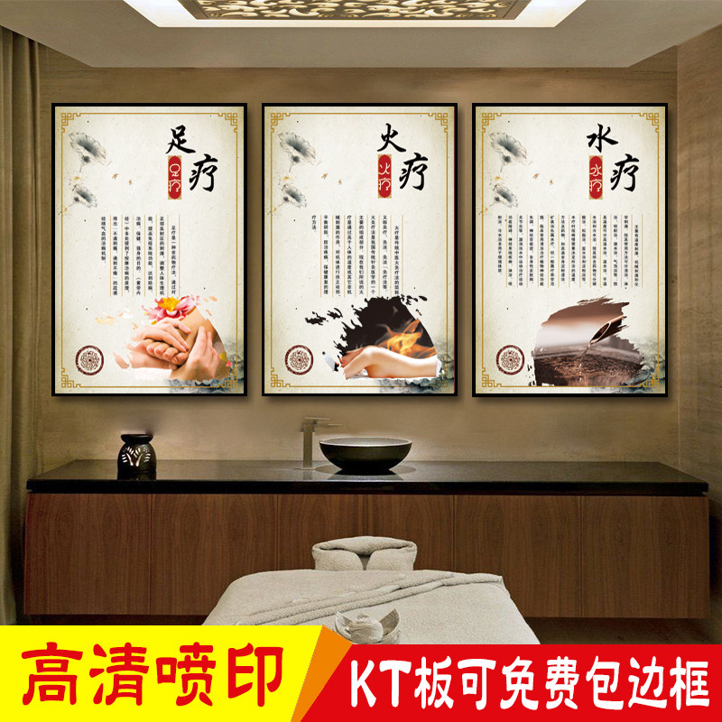 中医养生馆针灸经络水疗肾部保养项目海报推拿拔罐砭石复古装饰画