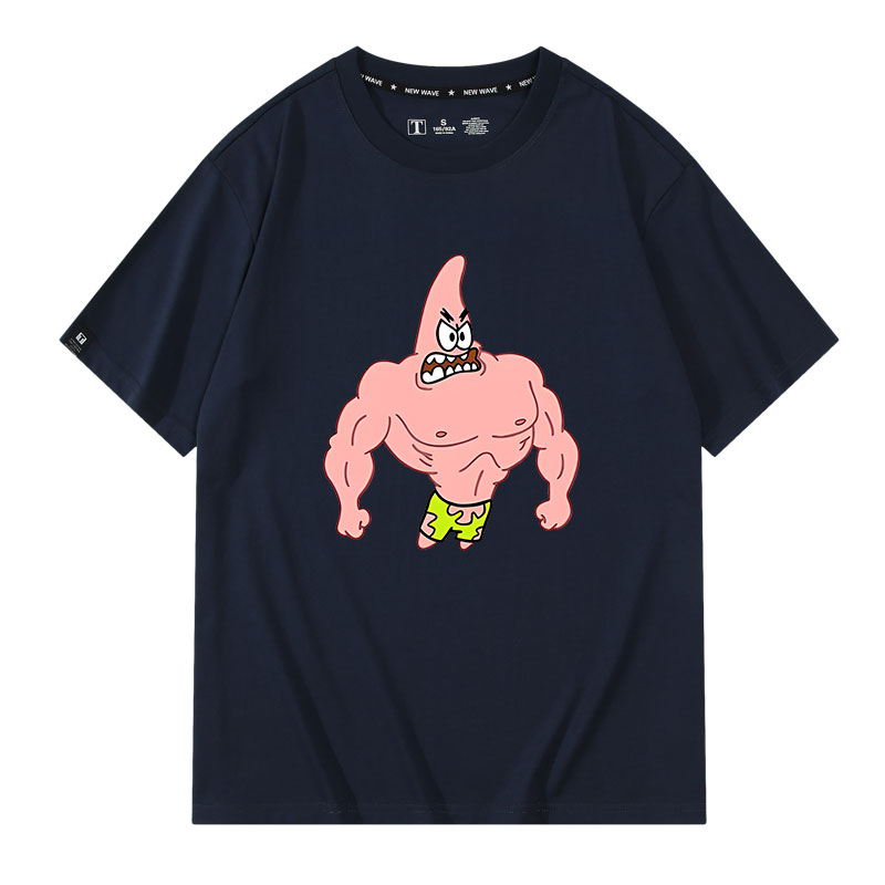 海绵宝宝派大星动漫周边肌肉健身搞笑卡通男女青少年百搭短袖T恤