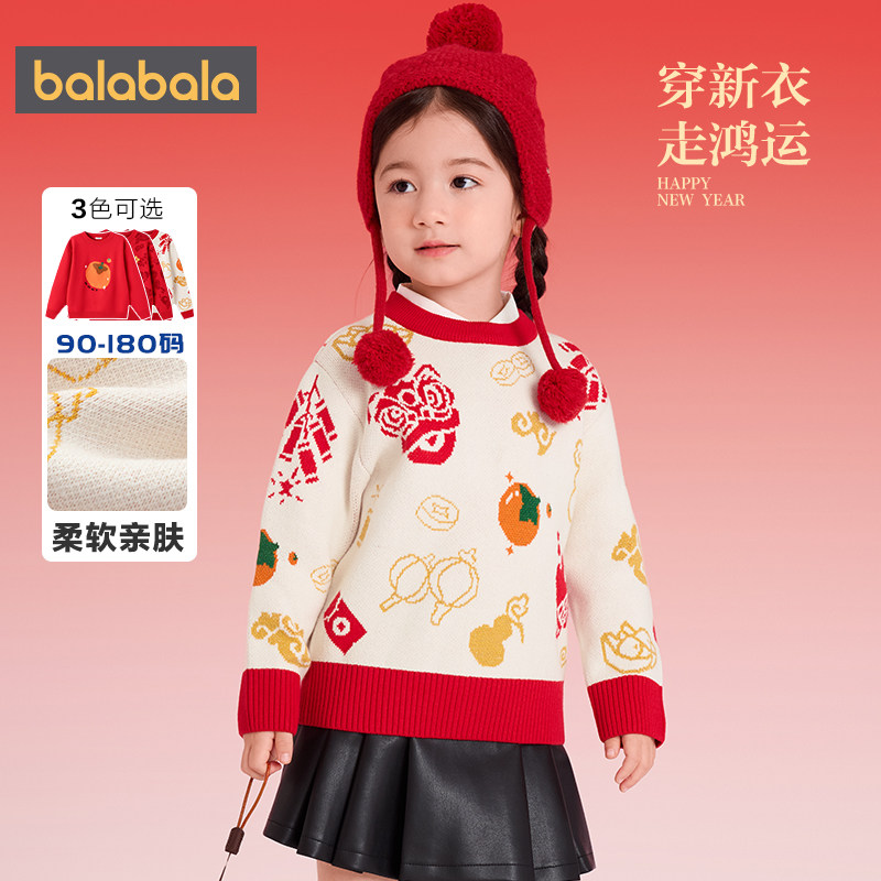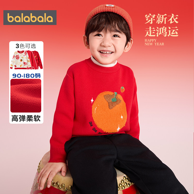 巴拉巴拉儿童针织衫宝宝毛衣红色