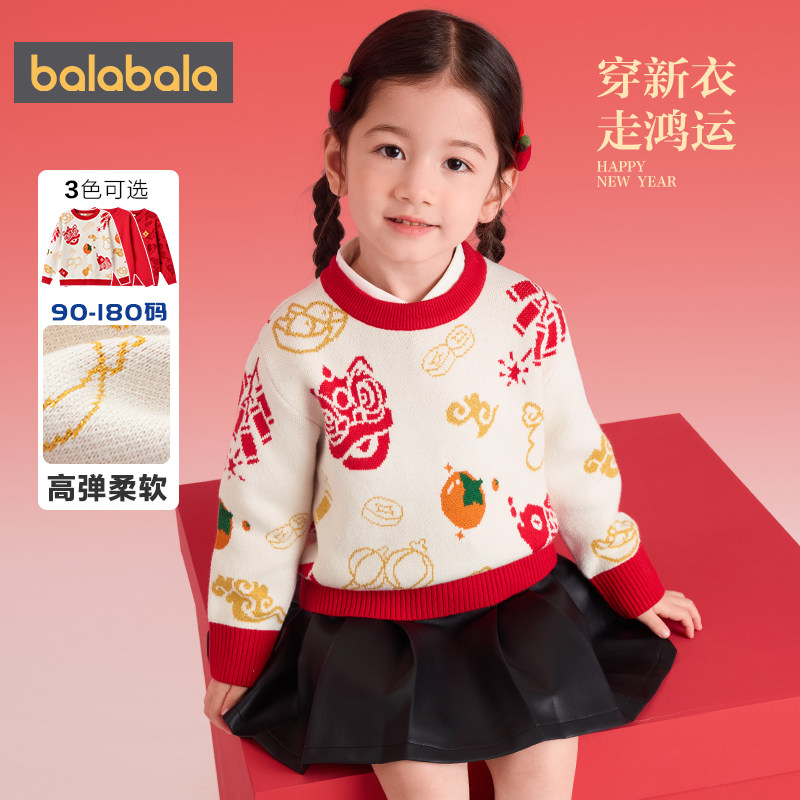巴拉巴拉儿童针织衫宝宝毛衣男童女童打底秋冬季款一家三口亲子装