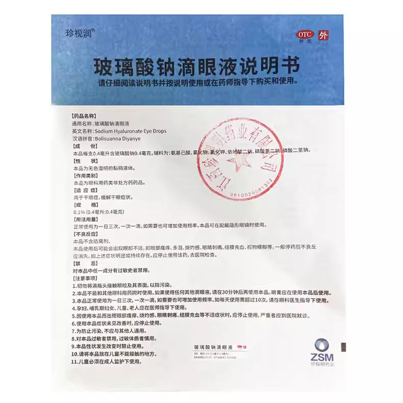 珍视明玻璃酸钠滴眼液眼药水10支人工泪液缓解干眼症状正品珍视润