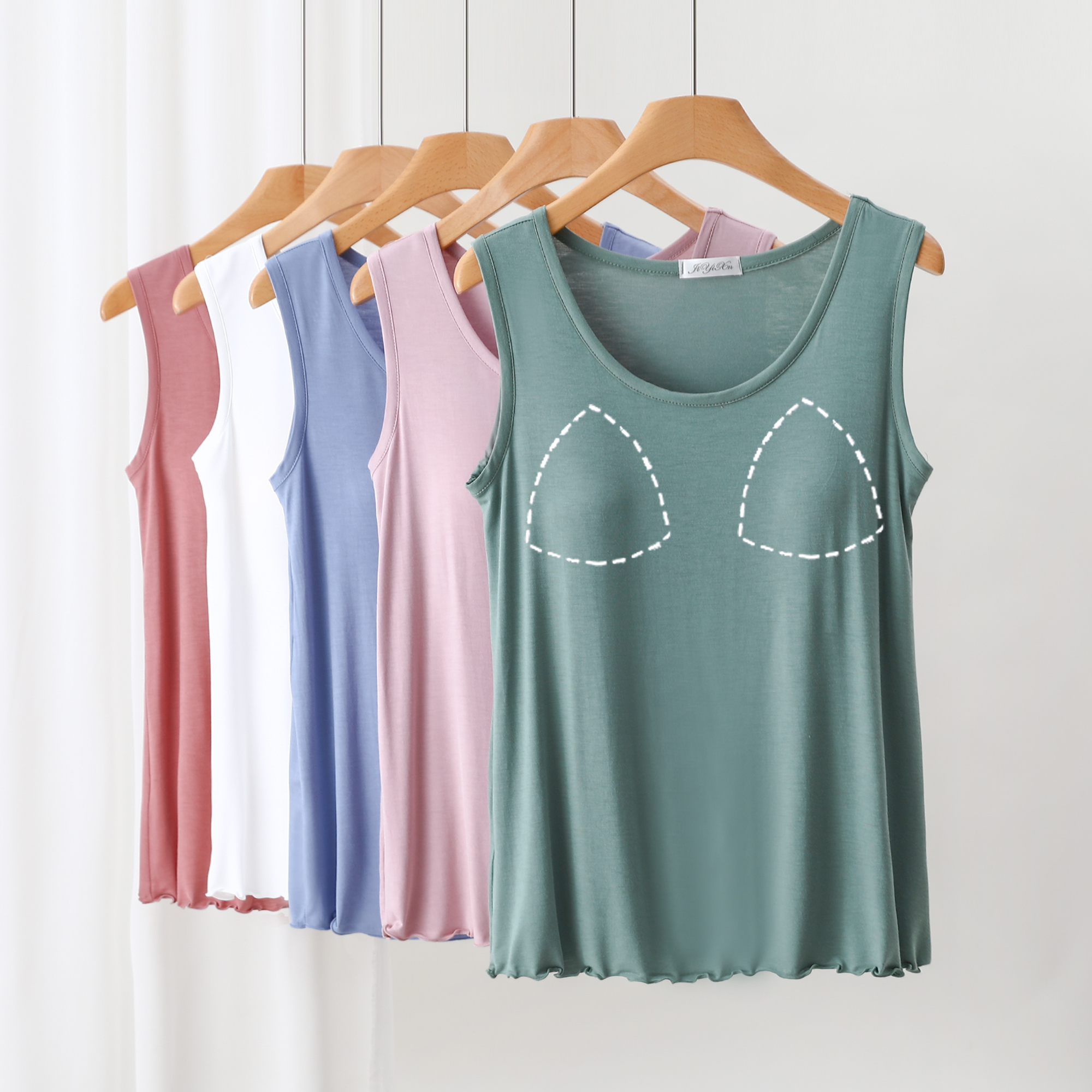 莫代尔背心女带胸垫款家居服